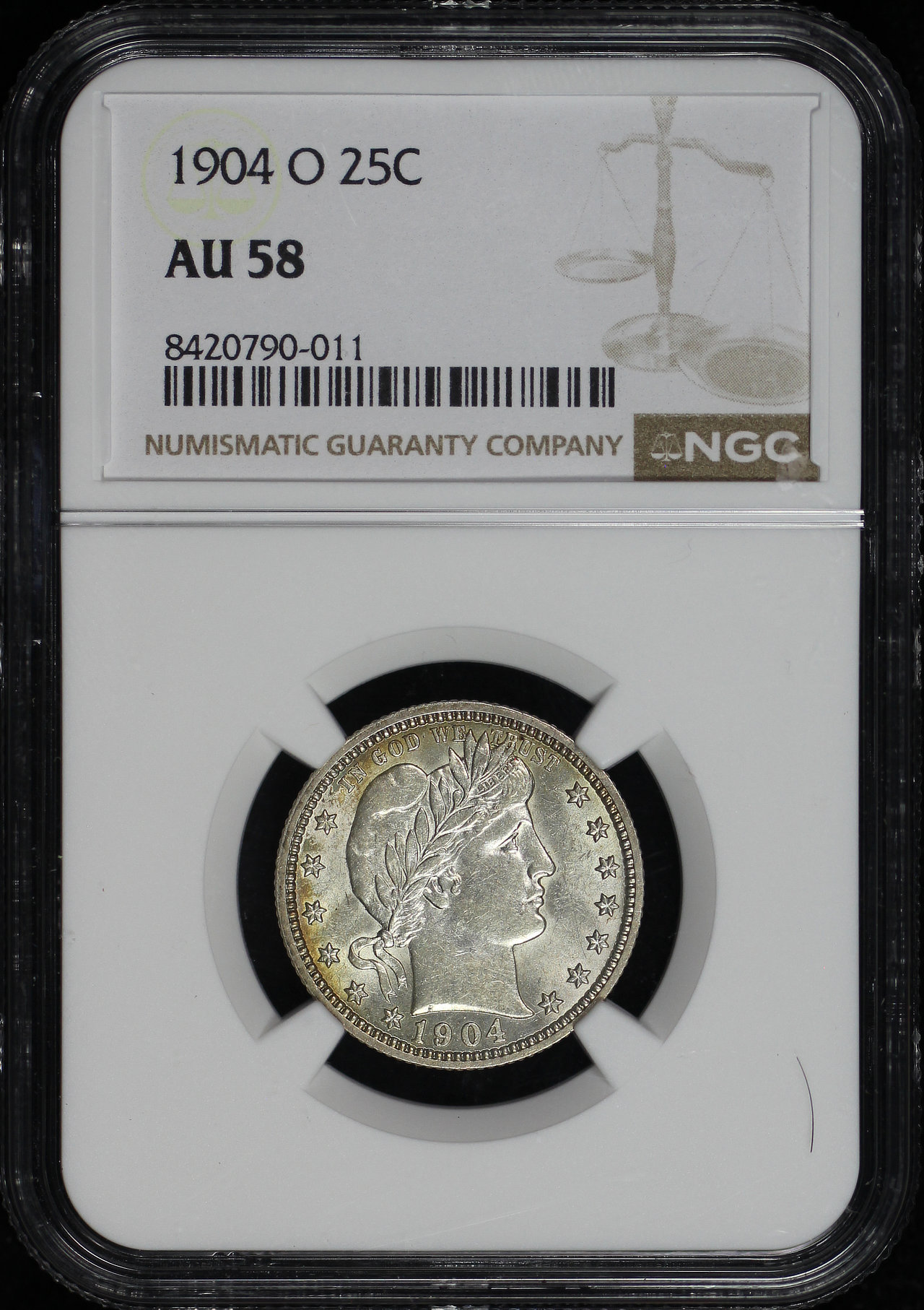 1904-O Barber Quarter NGC AU-58.