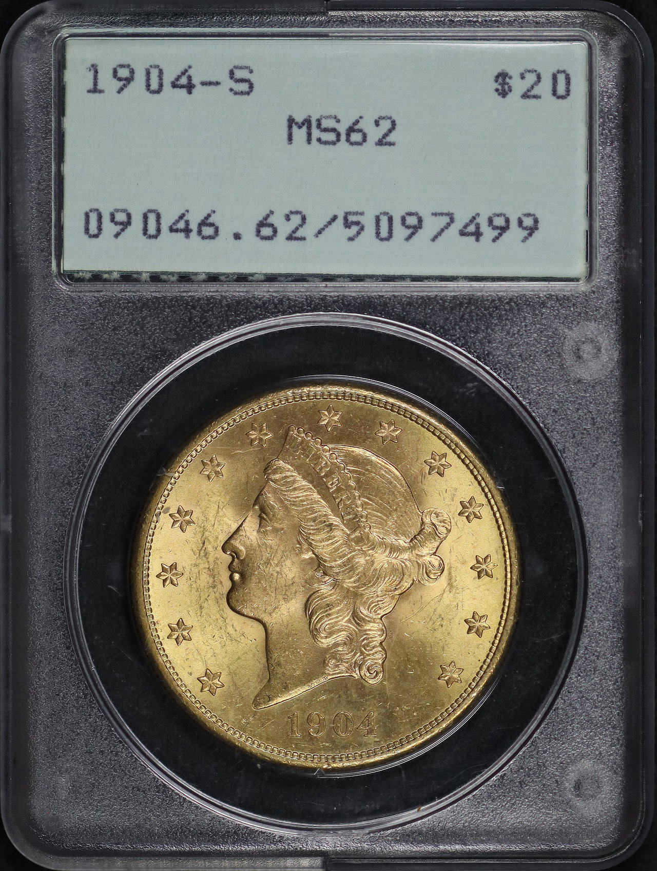 1904-S Liberty Head $20 Type 3 PCGS MS-62 Old Green Rattler Holder designed by James Barton Longacre.