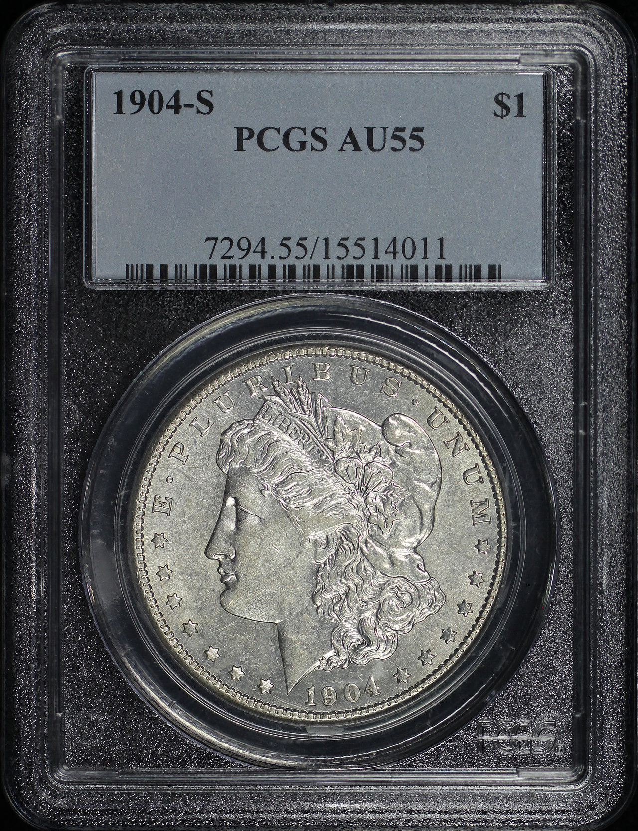 1904-S Morgan Dollar PCGS AU-55 designed by George T. Morgan.