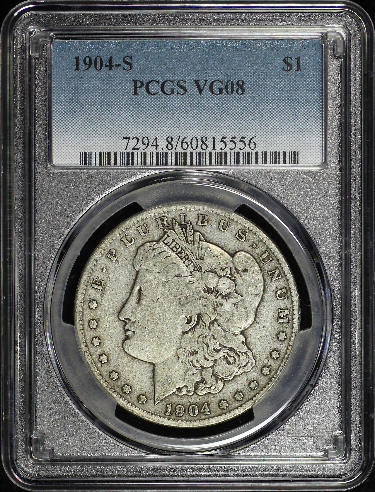 1904-S Morgan Dollar PCGS VG-08 designed by George T. Morgan.