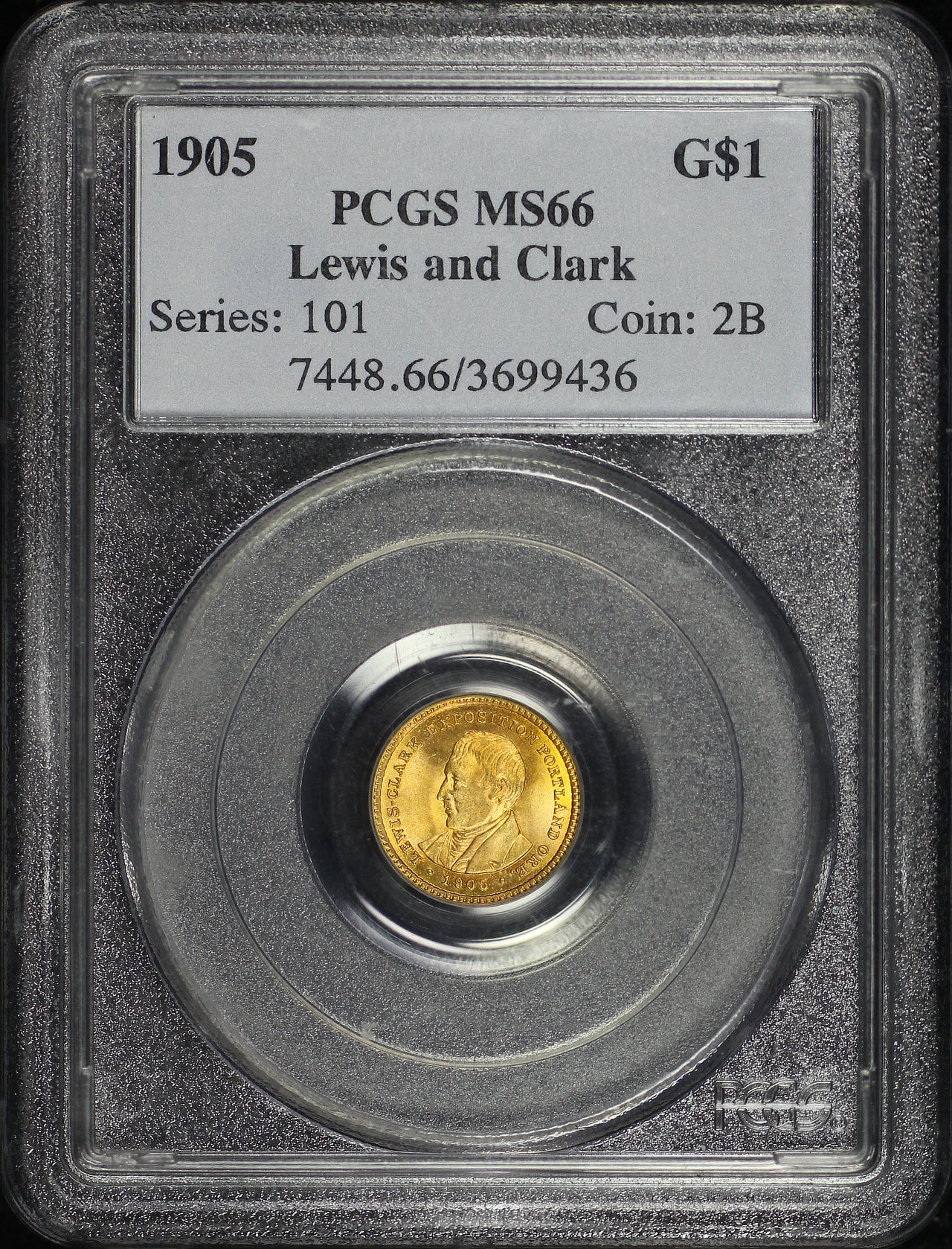 1905 G$1 Lewis and Clark Gold Commemorative PCGS MS-66 designed by Charles E. Barber.