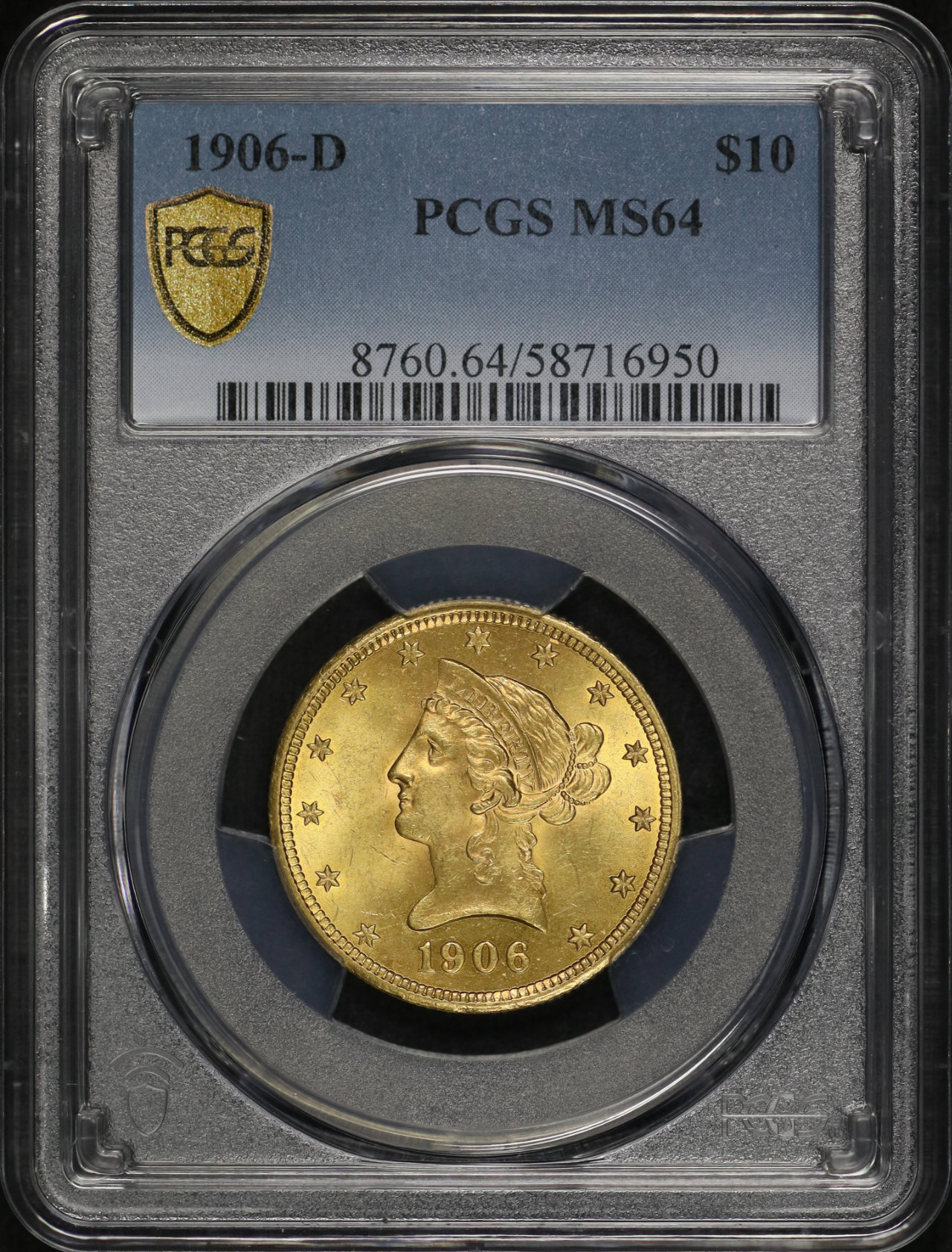1906-D Liberty Head $10 PCGS MS-64 designed by Christian Gobrecht.
