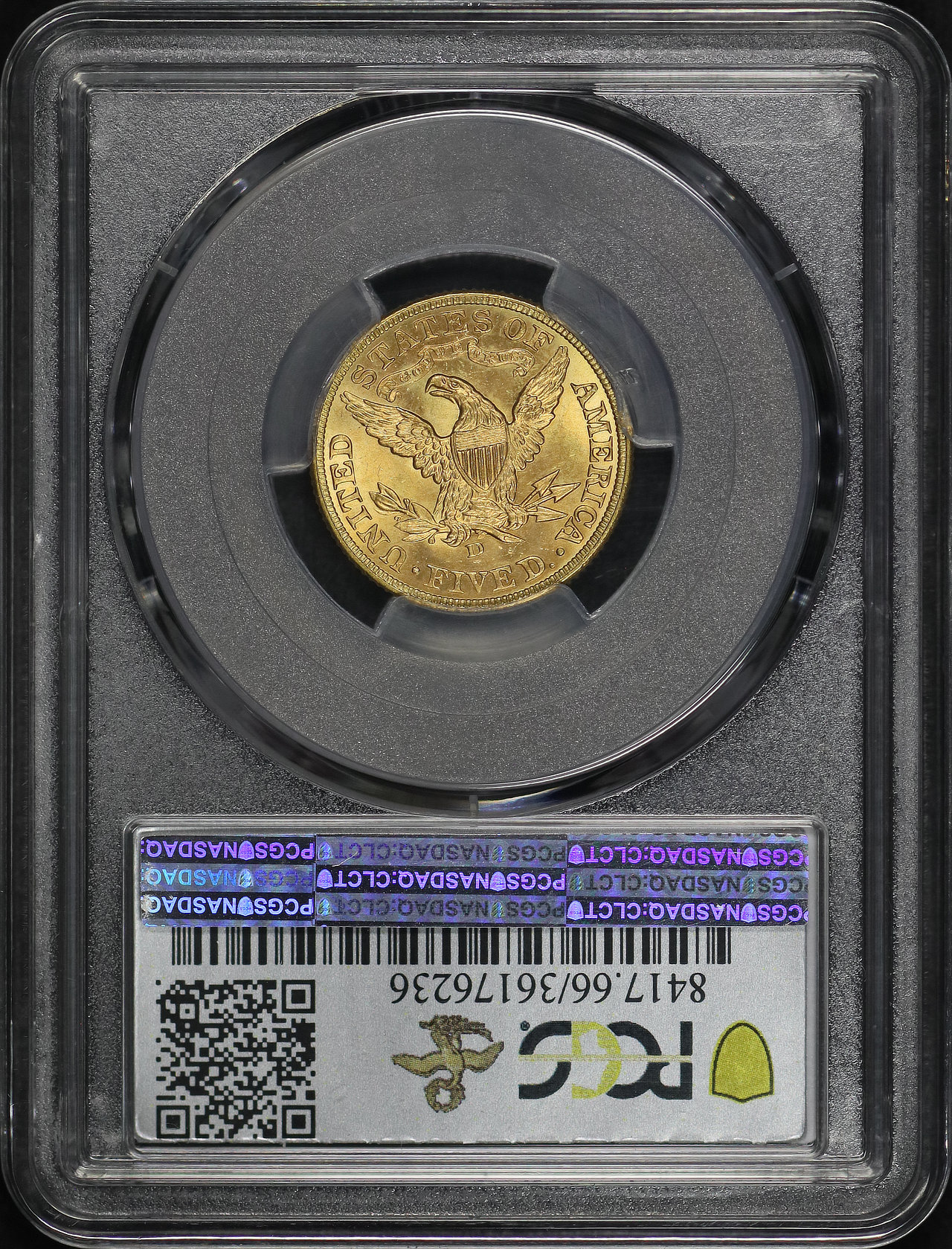 1907-D Liberty Head $5 PCGS MS-66 D.L. Hansen Collection designed by Christian Gobrecht.