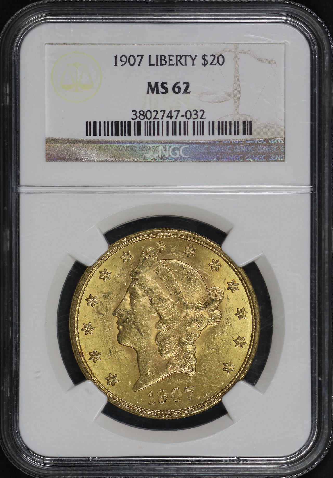 1907 Liberty Head $20 Type 3 Liberty NGC MS-62.