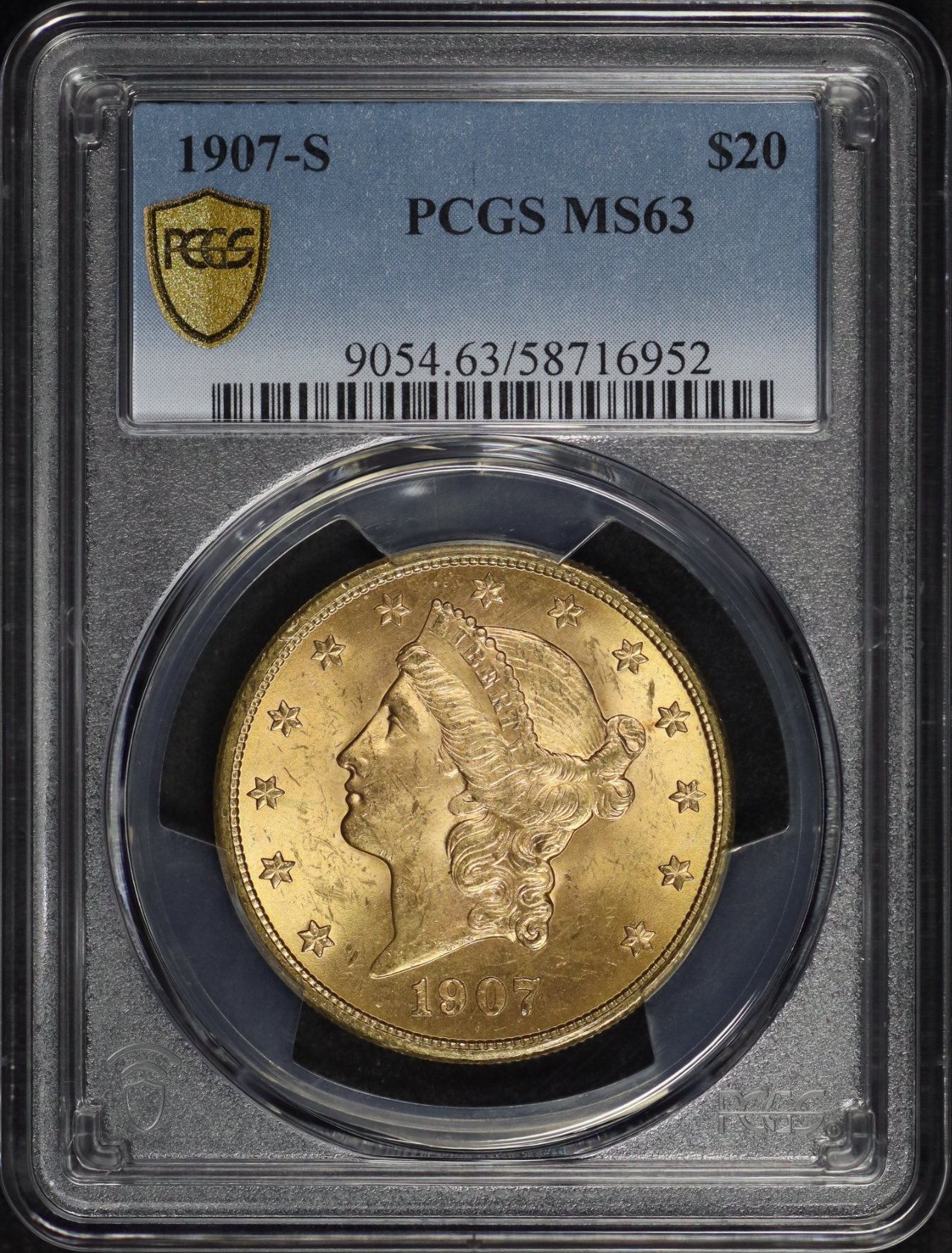 1907-S Liberty Head $20 Type 3 PCGS MS-63 designed by James Barton Longacre.