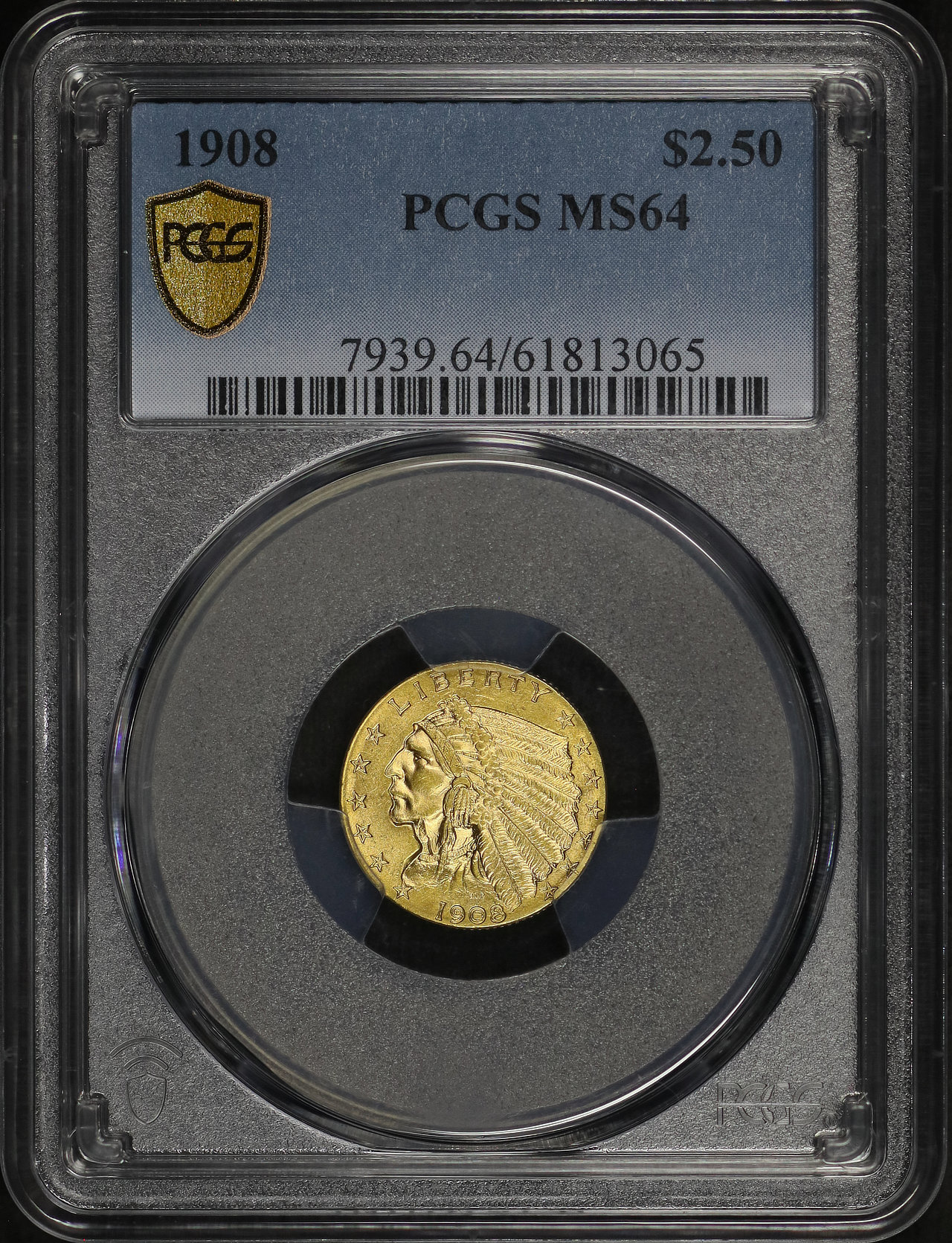 1908 Indian $2.5 PCGS MS-64 designed by Bela Lyon Pratt.