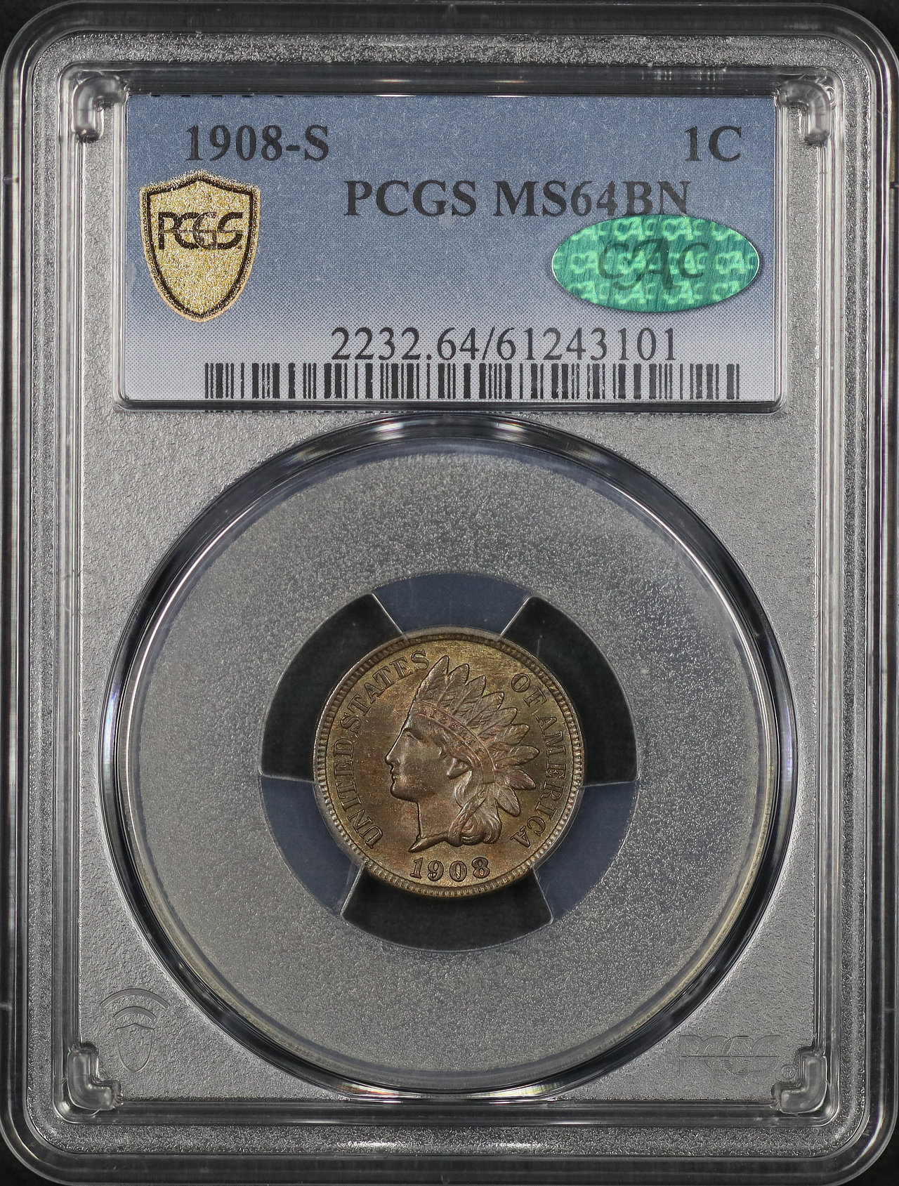 1908-S Indian Cent PCGS MS-64 BN CAC