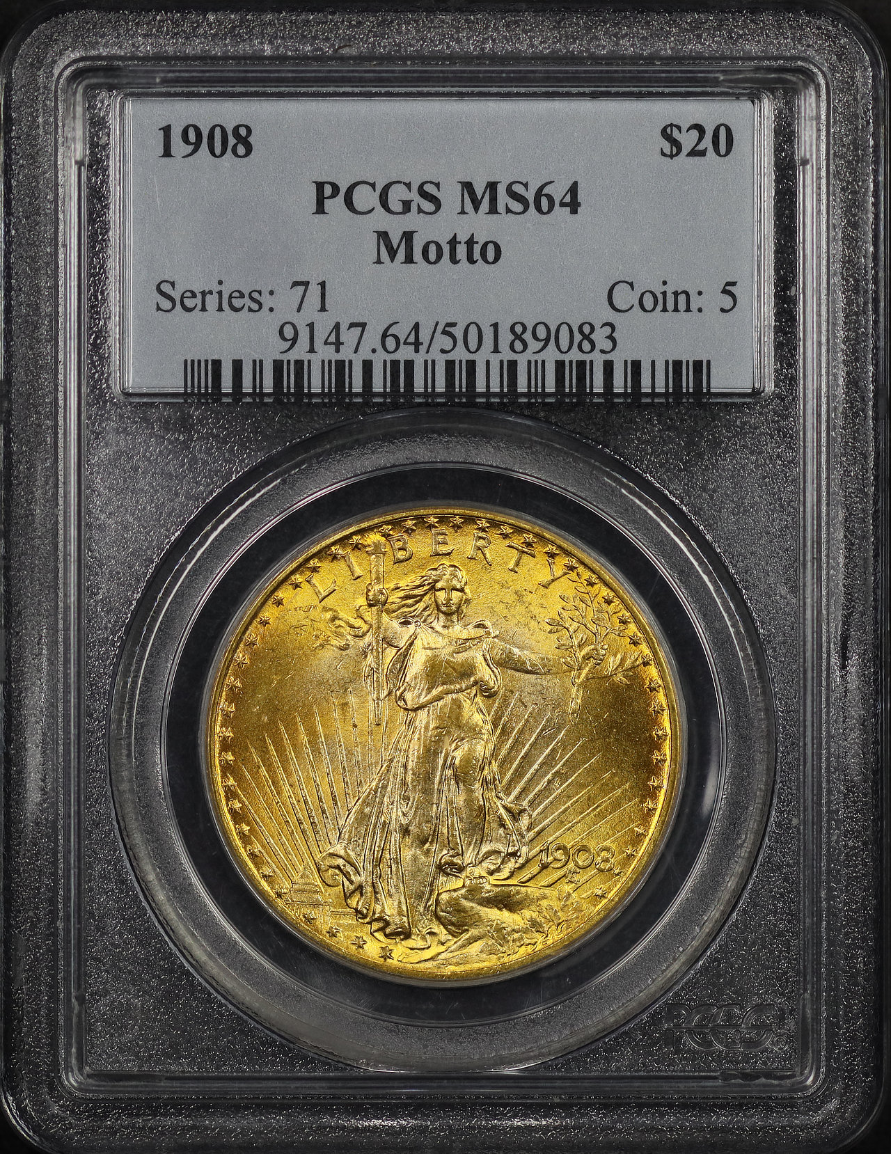 1908 St. Gaudens $20 Motto PCGS MS-64 designed by Augustus Saint Gaudens.