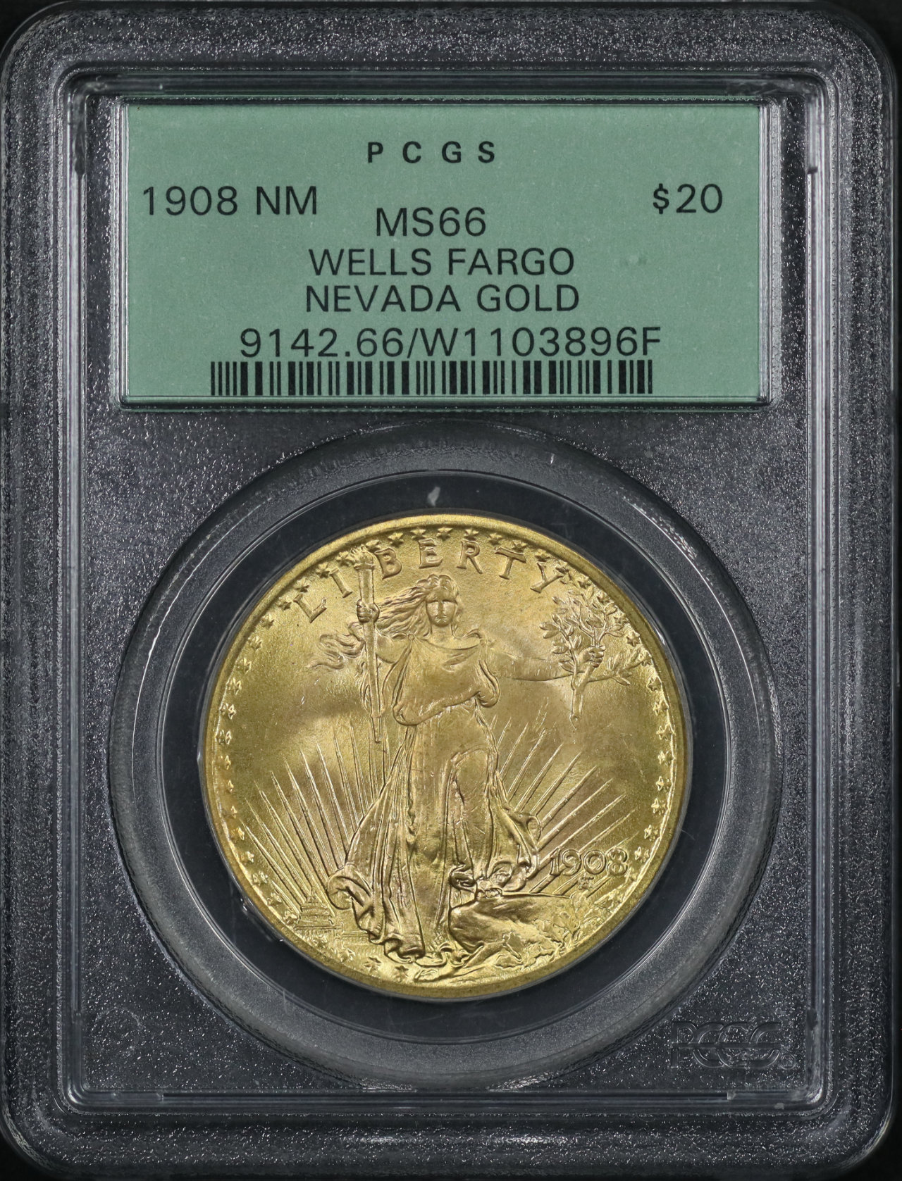 1908 St. Gaudens $20 No Motto PCGS MS-66 Old Green Holder designed by Augustus Saint Gaudens.