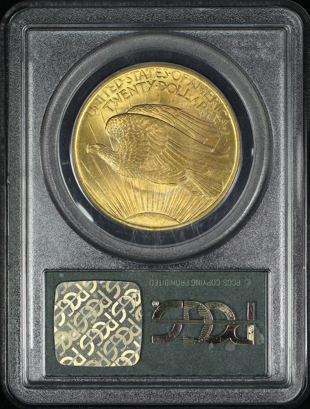 1908 NM St. Gaudens $20 No Motto PCGS MS-66 Nevada Wells Fargo Hoard Old Green Holder designed by Augustus Saint Gaudens.