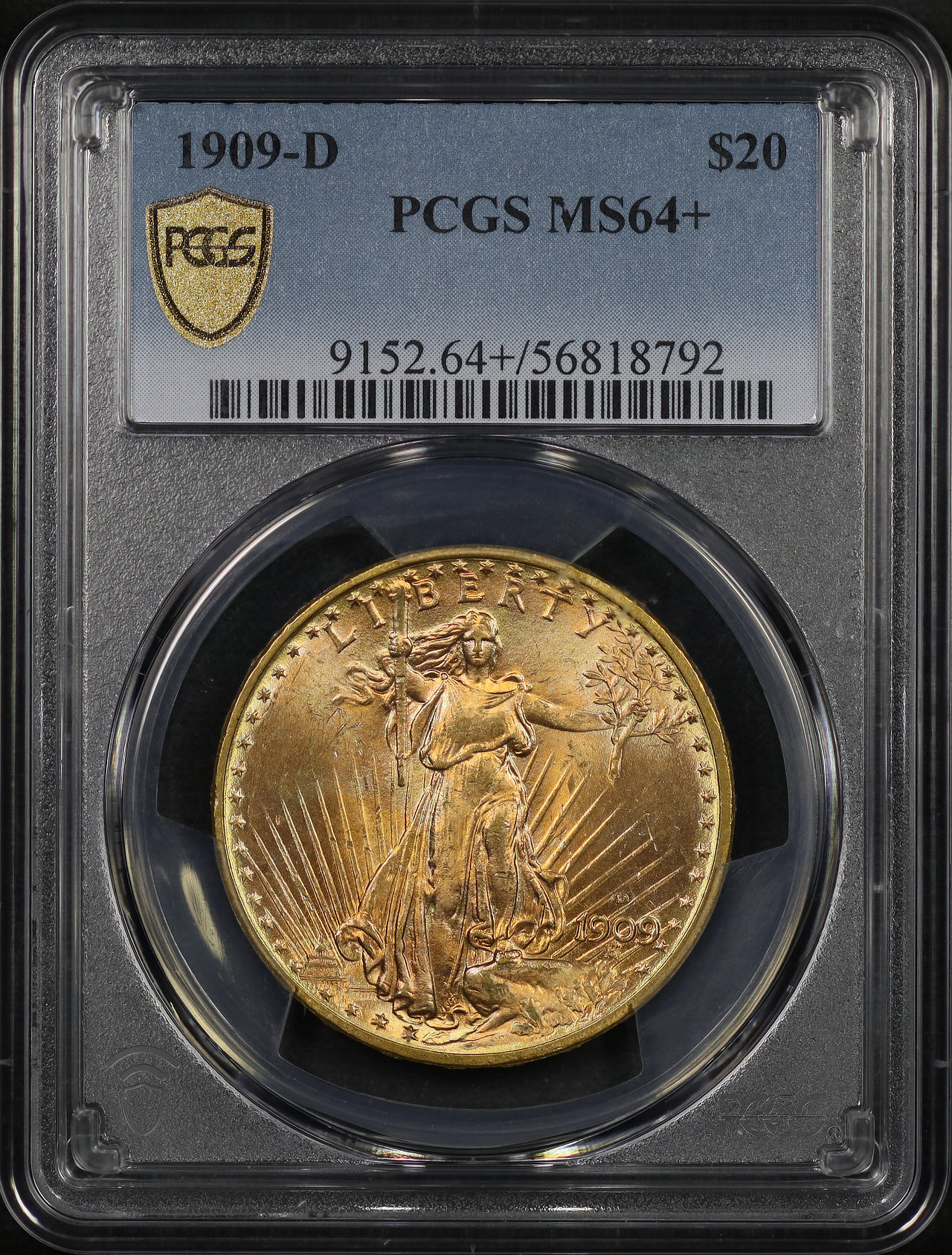 1909-D St. Gaudens $20 PCGS MS-64+ designed by Augustus Saint Gaudens.