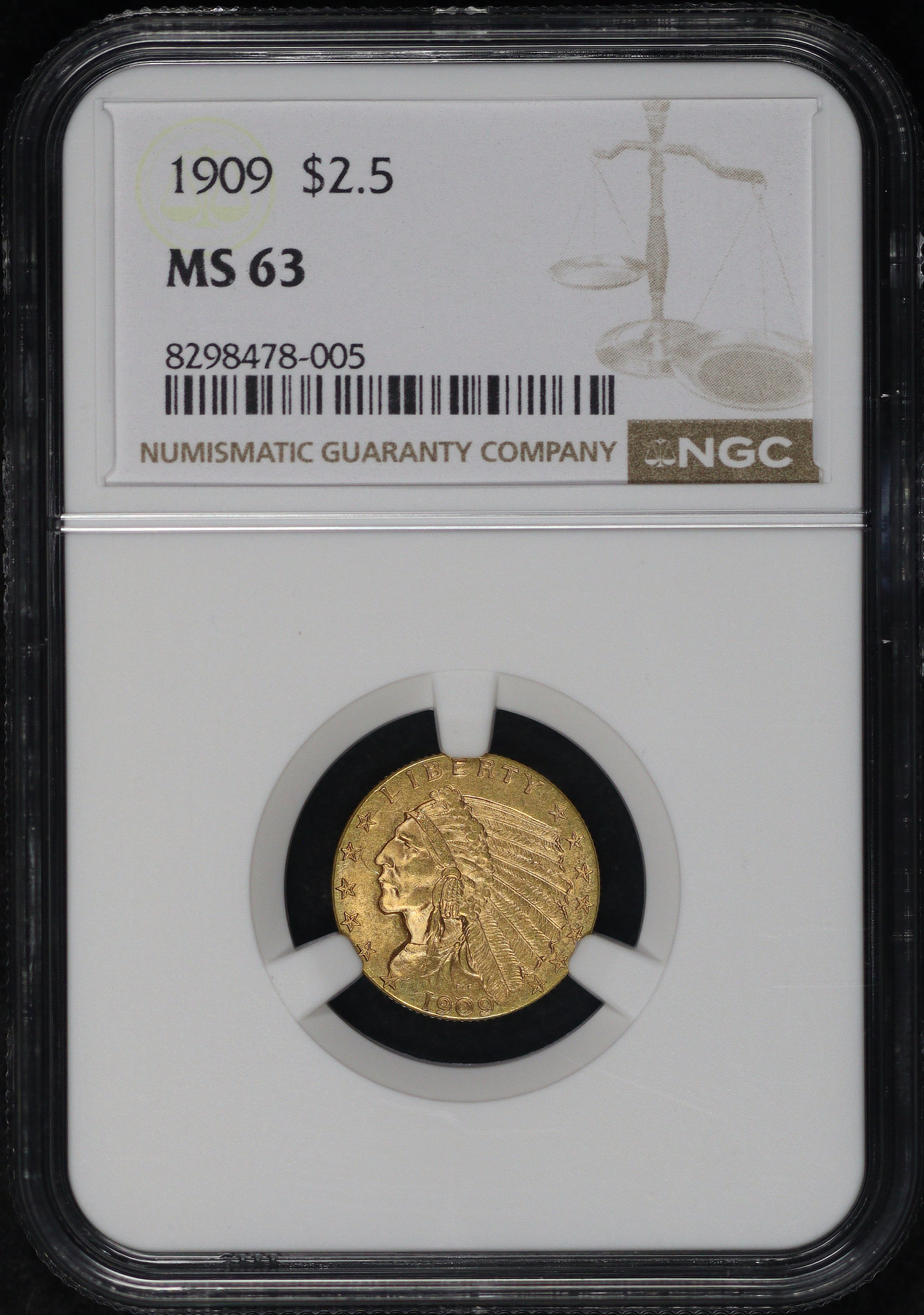1909 Indian $2.5 NGC MS-63.