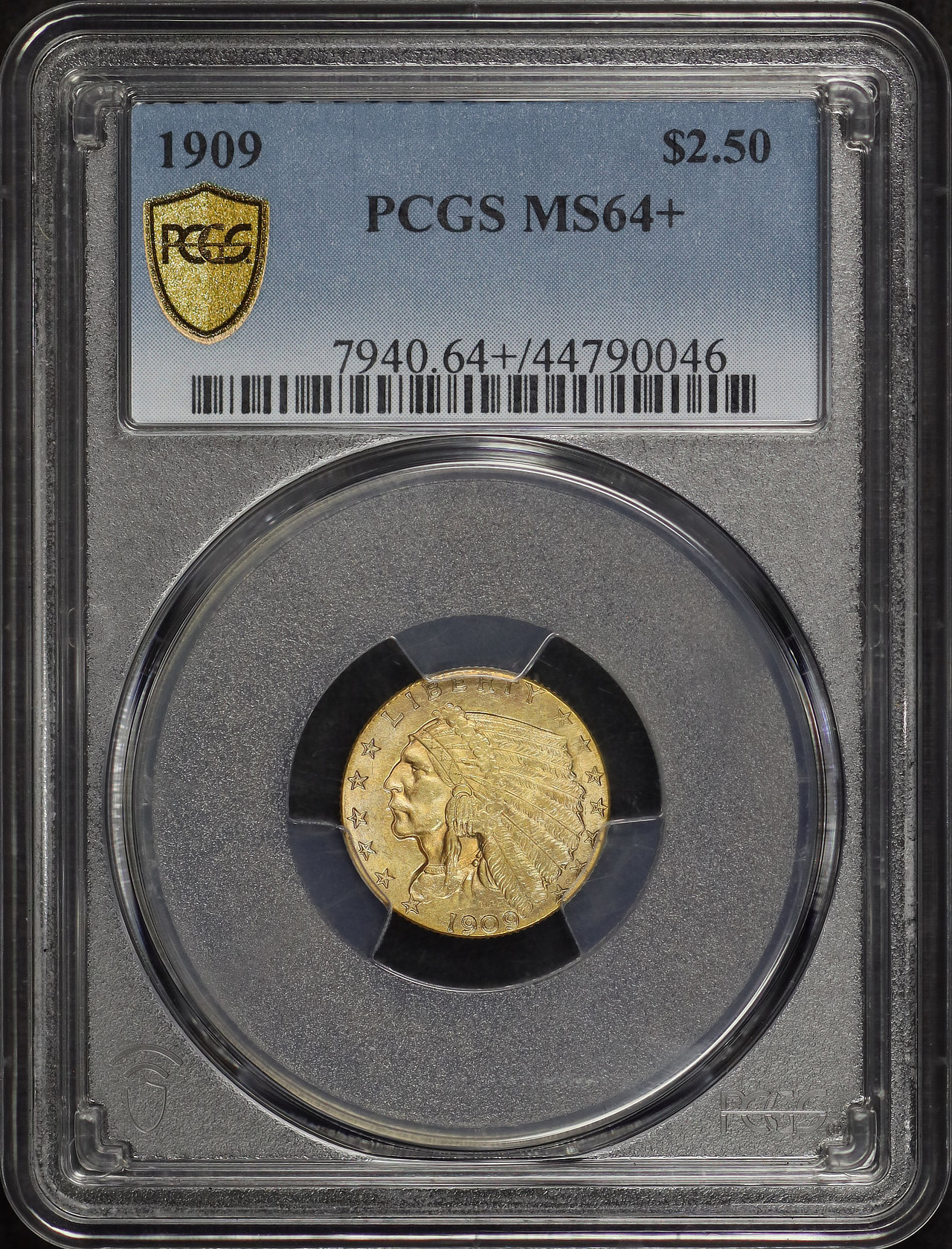 1909 Indian $2.5 PCGS MS-64+ designed by Bela Lyon Pratt.
