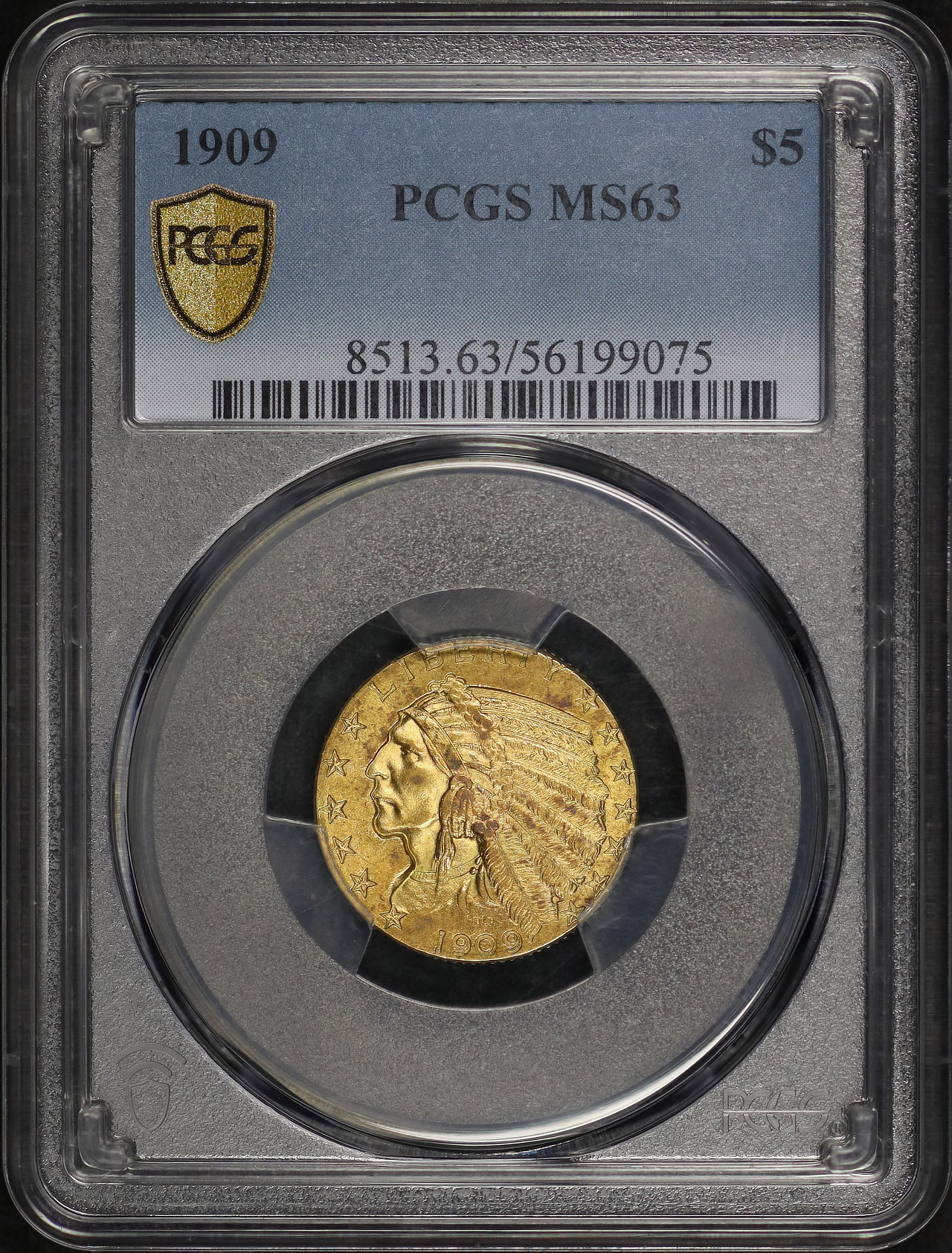 1909 Indian $5 PCGS MS-63 designed by Bela Lyon Pratt.
