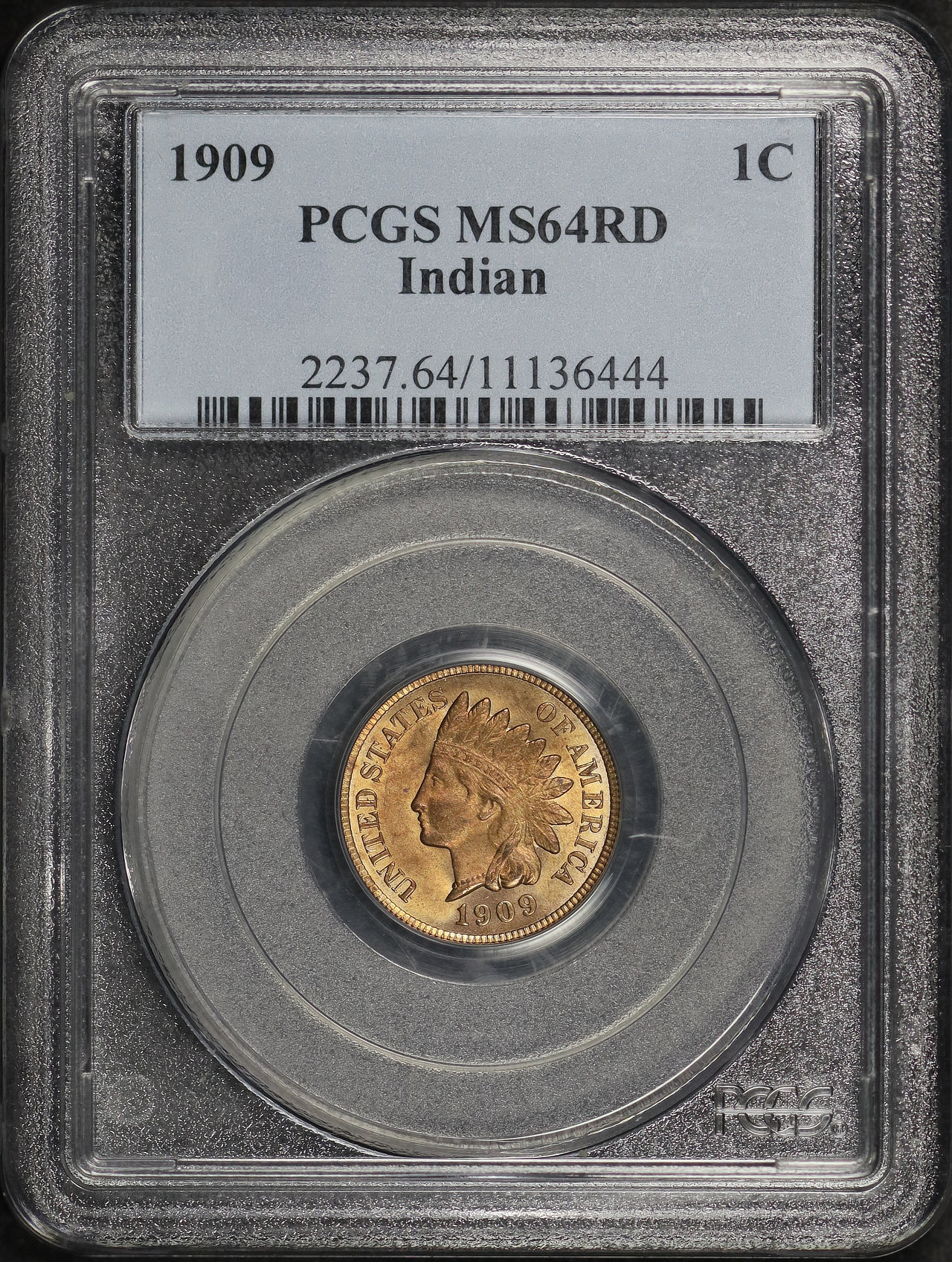1909 Indian Cent PCGS MS-64 RD designed by James Barton Longacre.