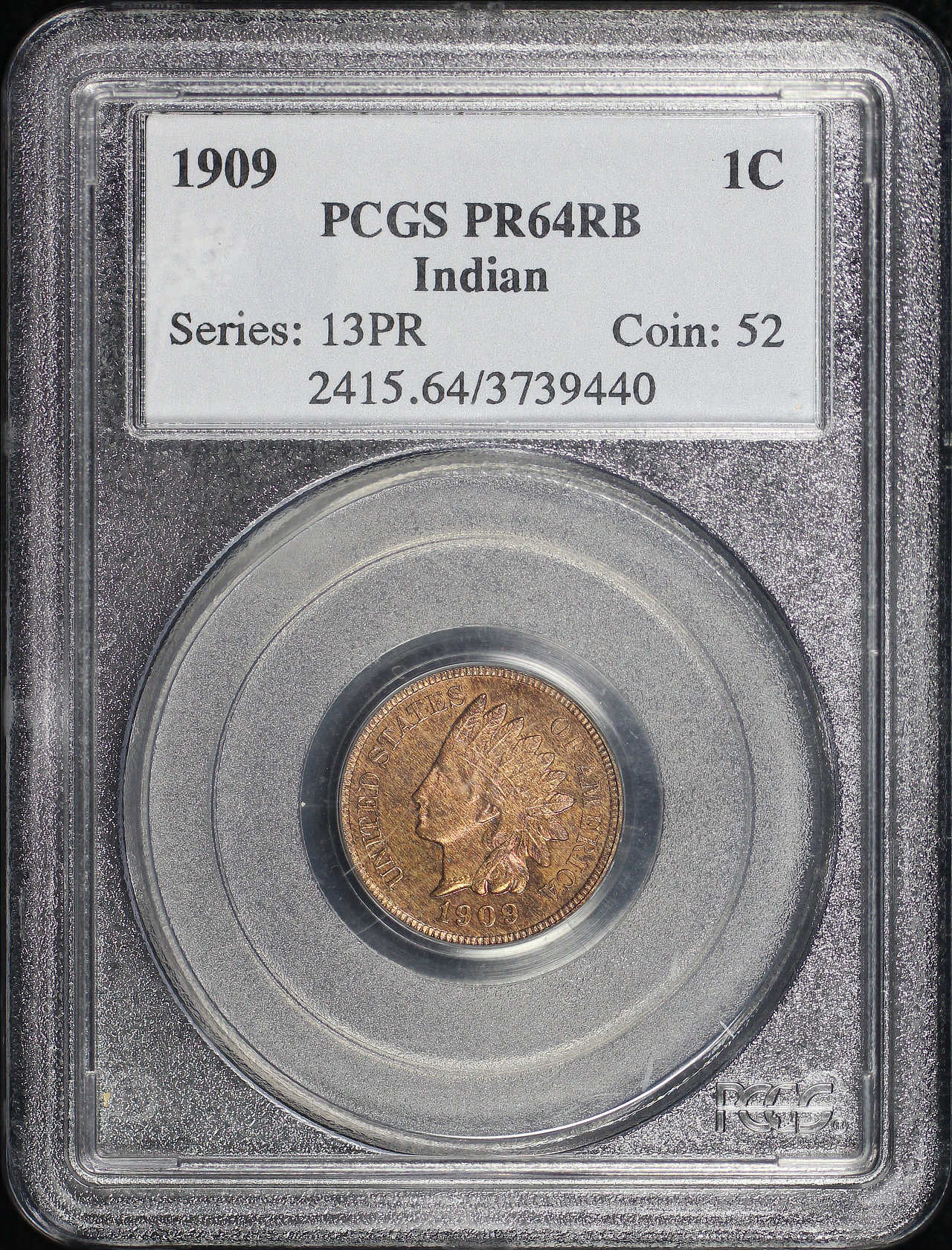1909 Indian Cent PCGS PR-64 RB designed by James Barton Longacre.