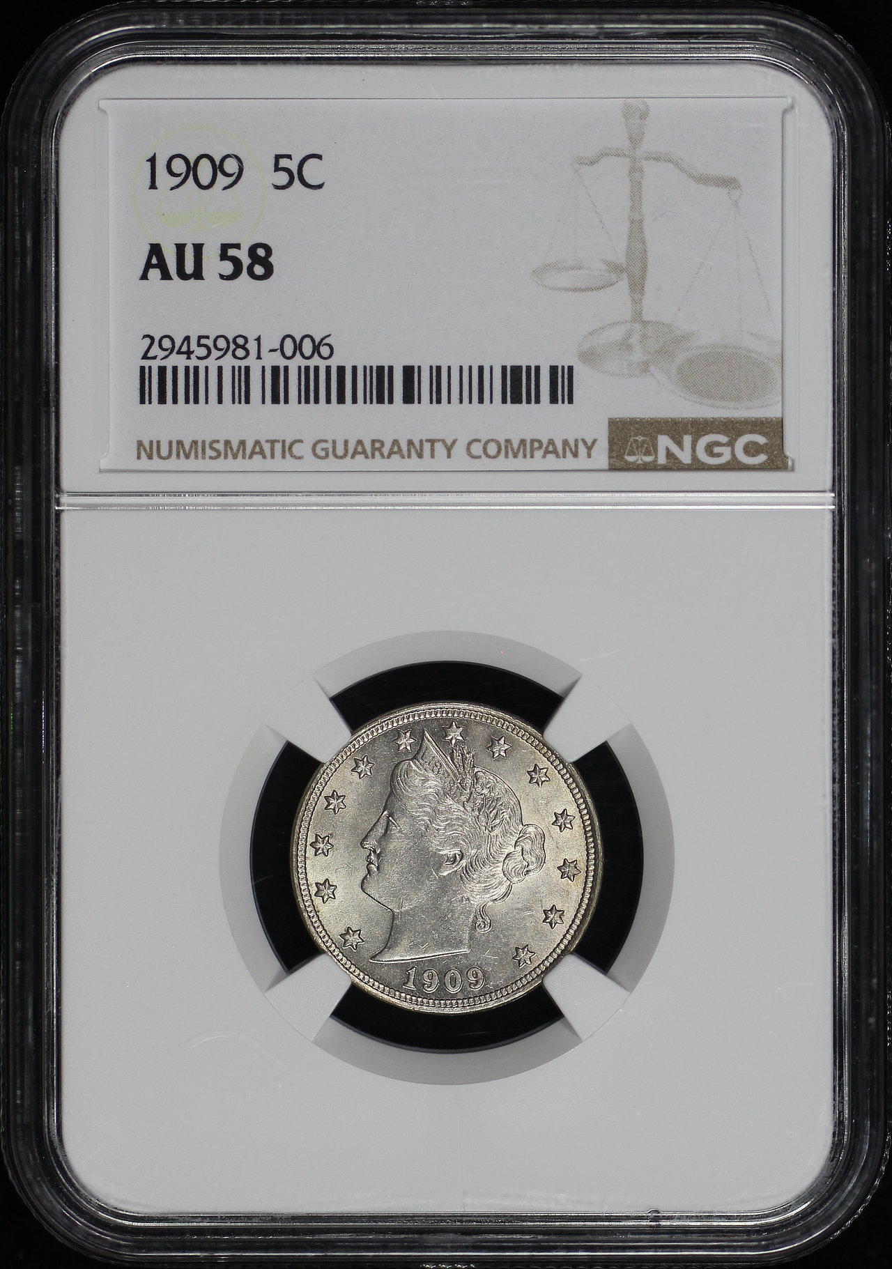 1909 Liberty Nickel NGC AU-58.