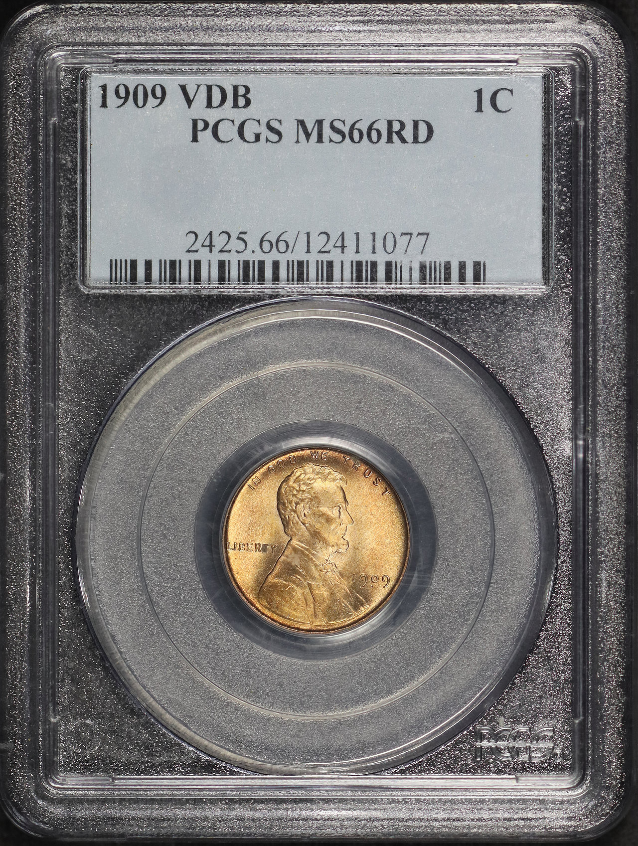 1909 VDB Lincoln Cent Wheat Reverse PCGS MS-66 RD designed by Victor David Brenner.