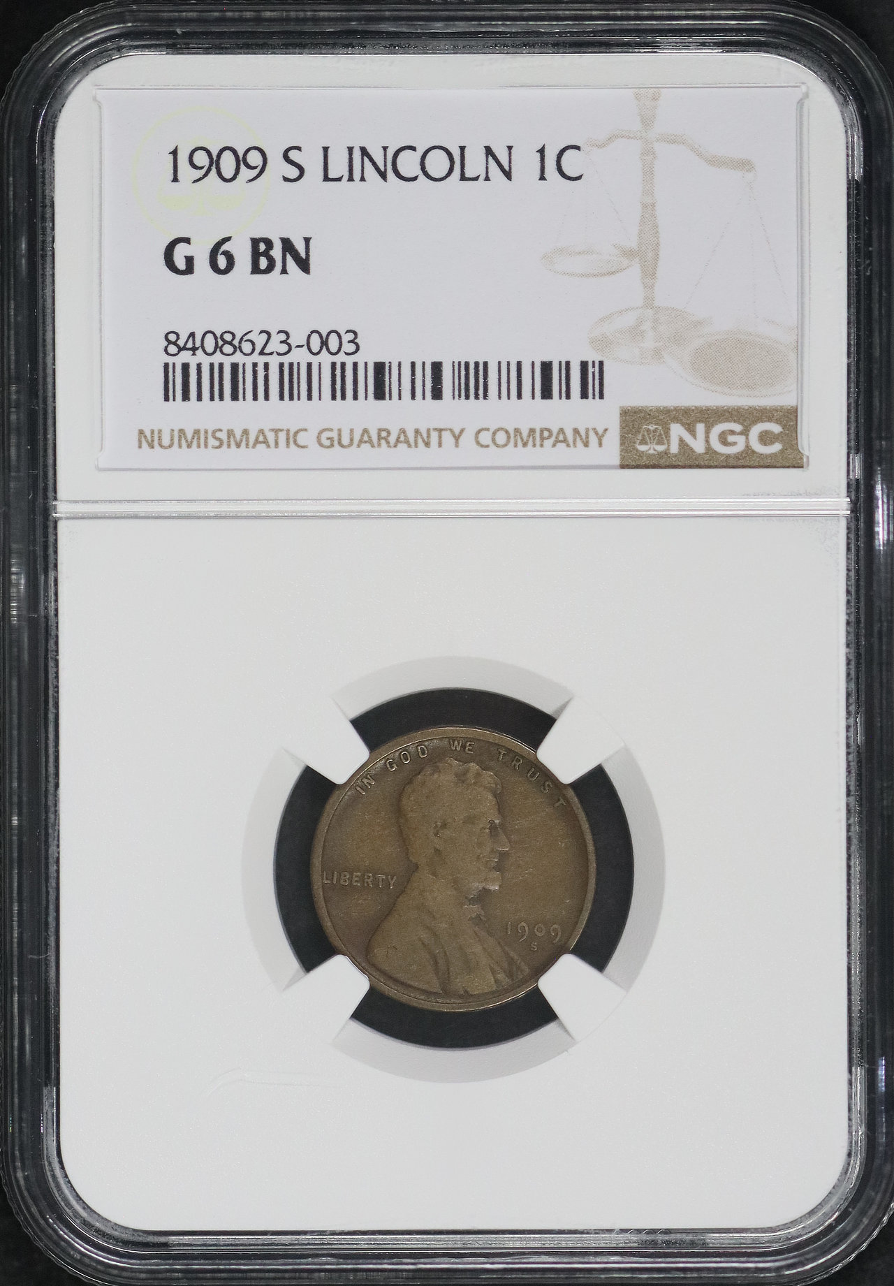 1909-S Lincoln Cent Wheat Reverse NGC G-6 BN.