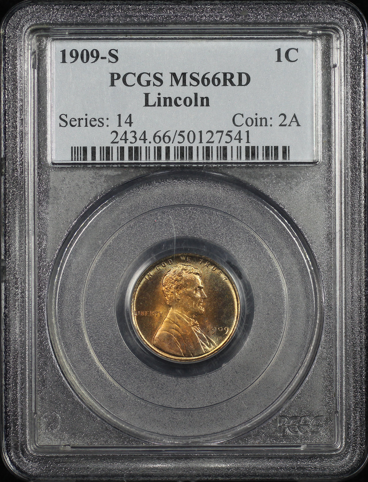 1909-S Lincoln Cent Wheat Reverse PCGS MS-66 RD designed by Victor David Brenner.