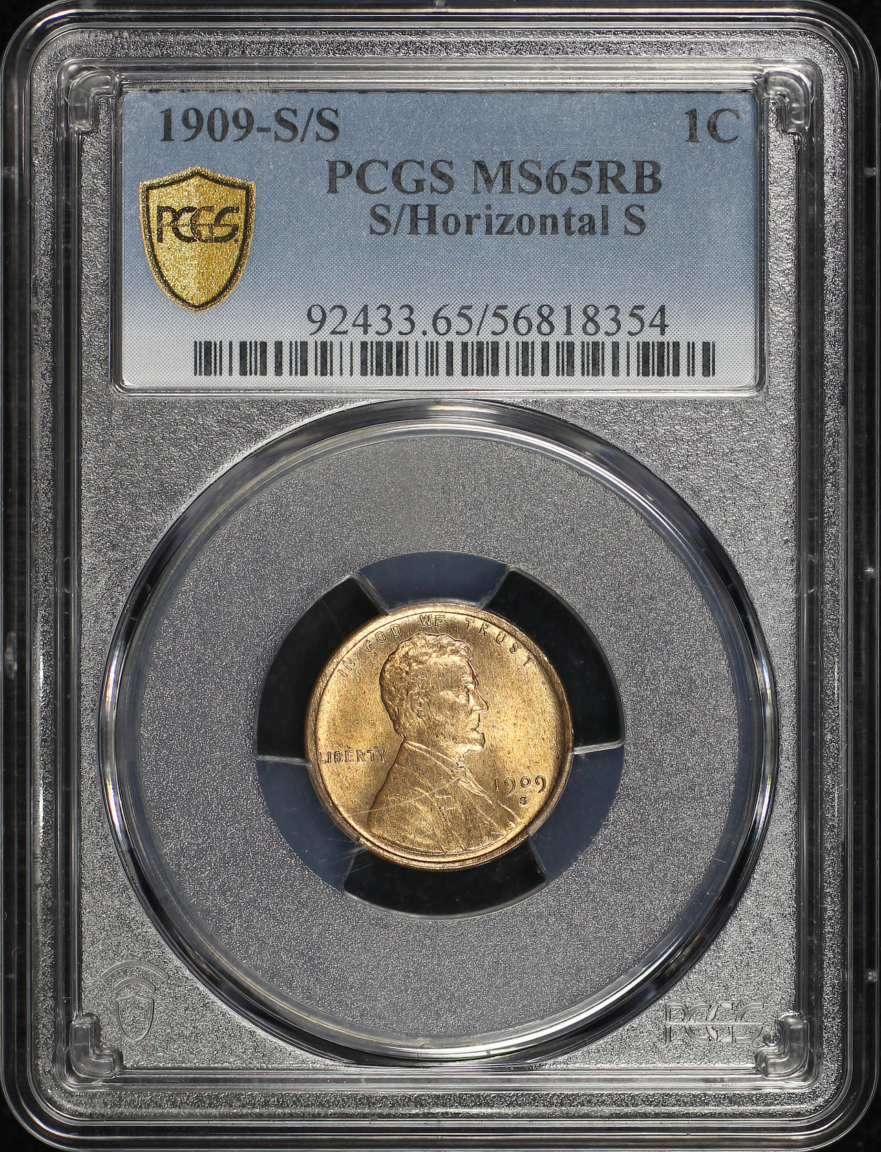 1909-S/S Lincoln Cent Wheat Reverse S/Horizontal S PCGS MS-65 RB designed by Victor David Brenner.