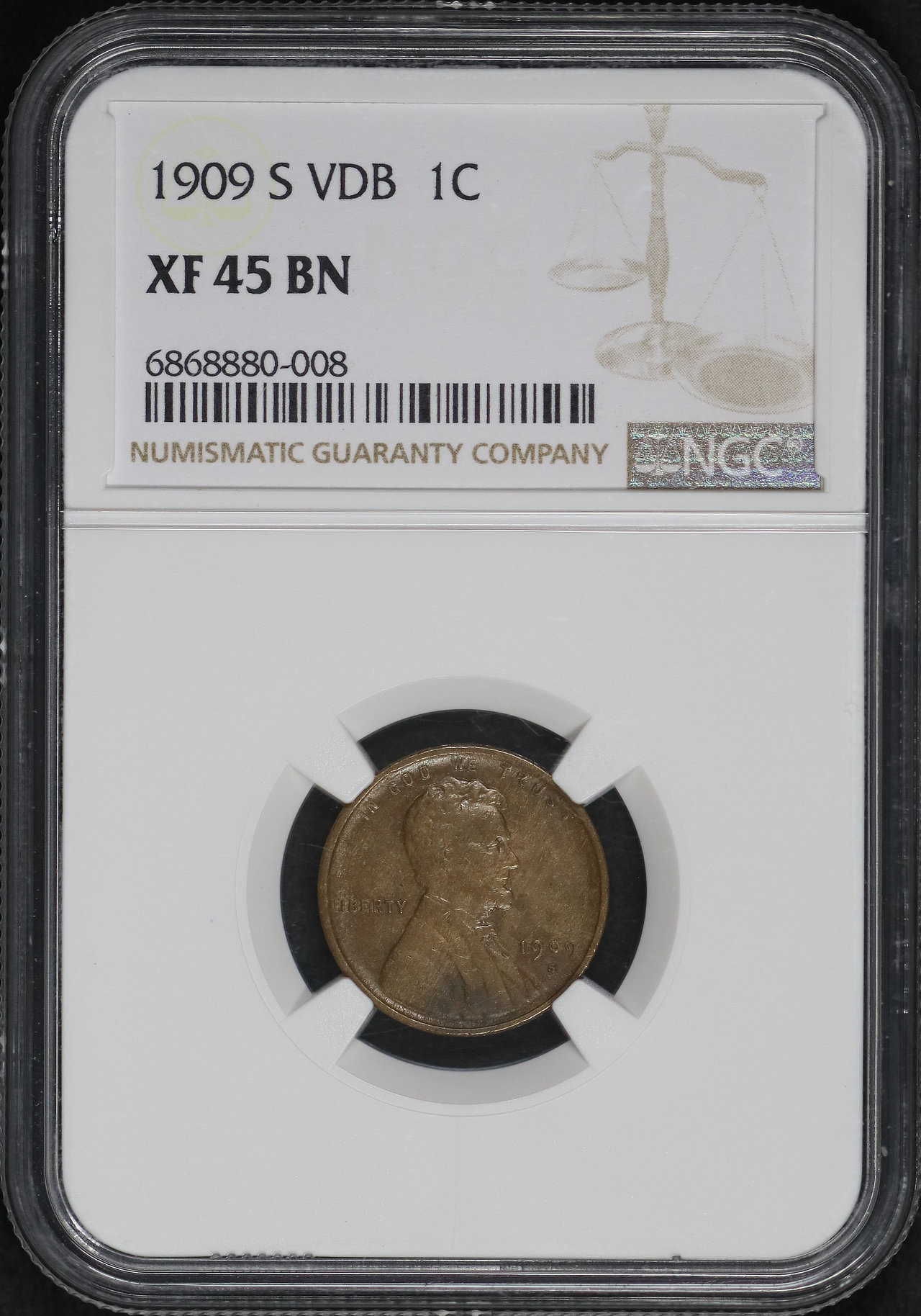 1909-S VDB Lincoln Cent Wheat Reverse NGC XF-45 BN.