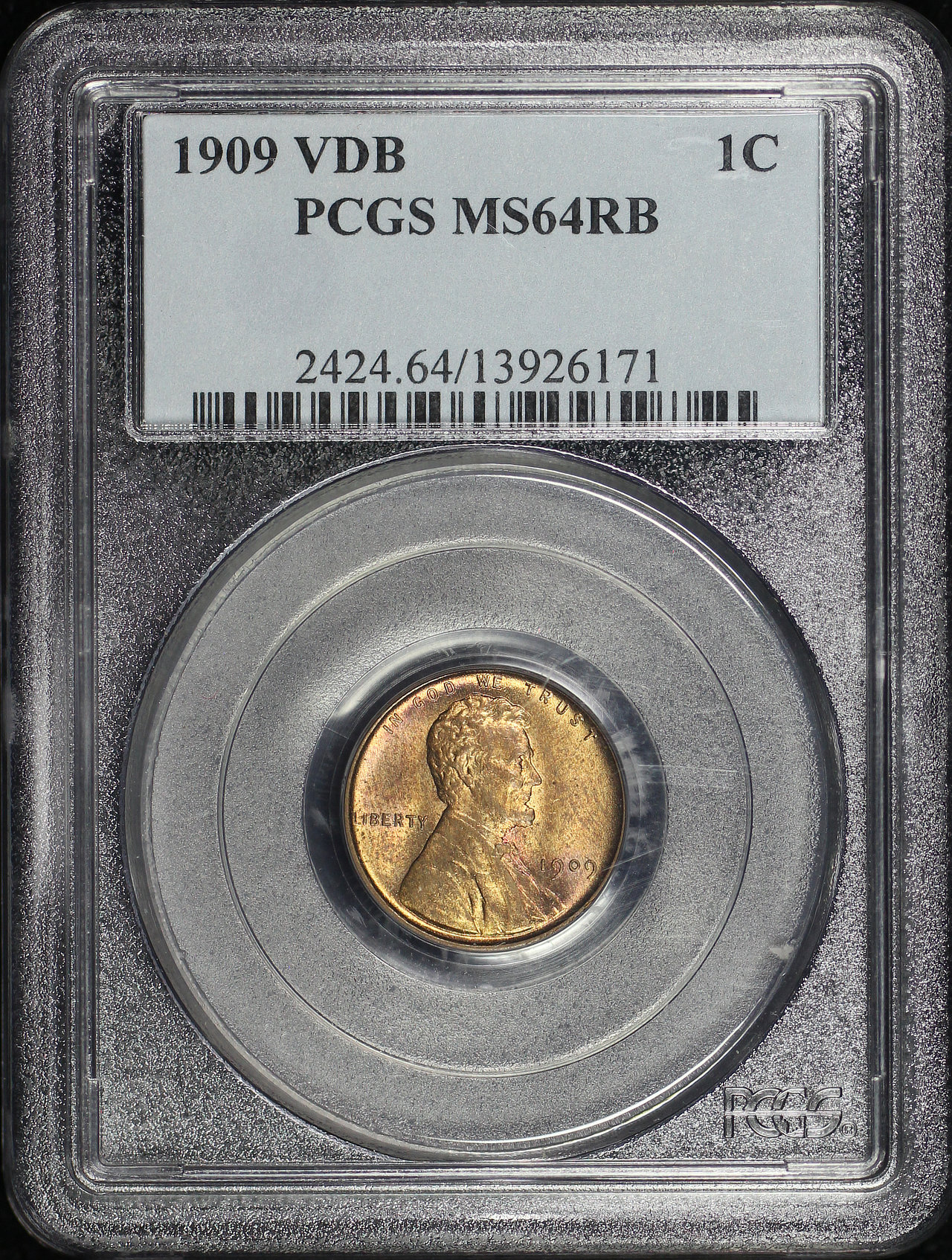 1909 VDB Lincoln Cent Wheat Reverse PCGS MS-64 RB designed by Victor David Brenner.