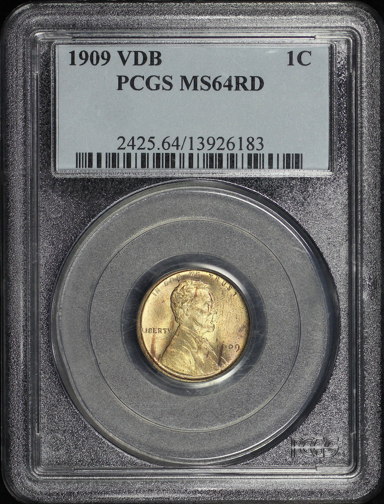 1909 VDB Lincoln Cent Wheat Reverse PCGS MS-64 RD designed by Victor David Brenner.