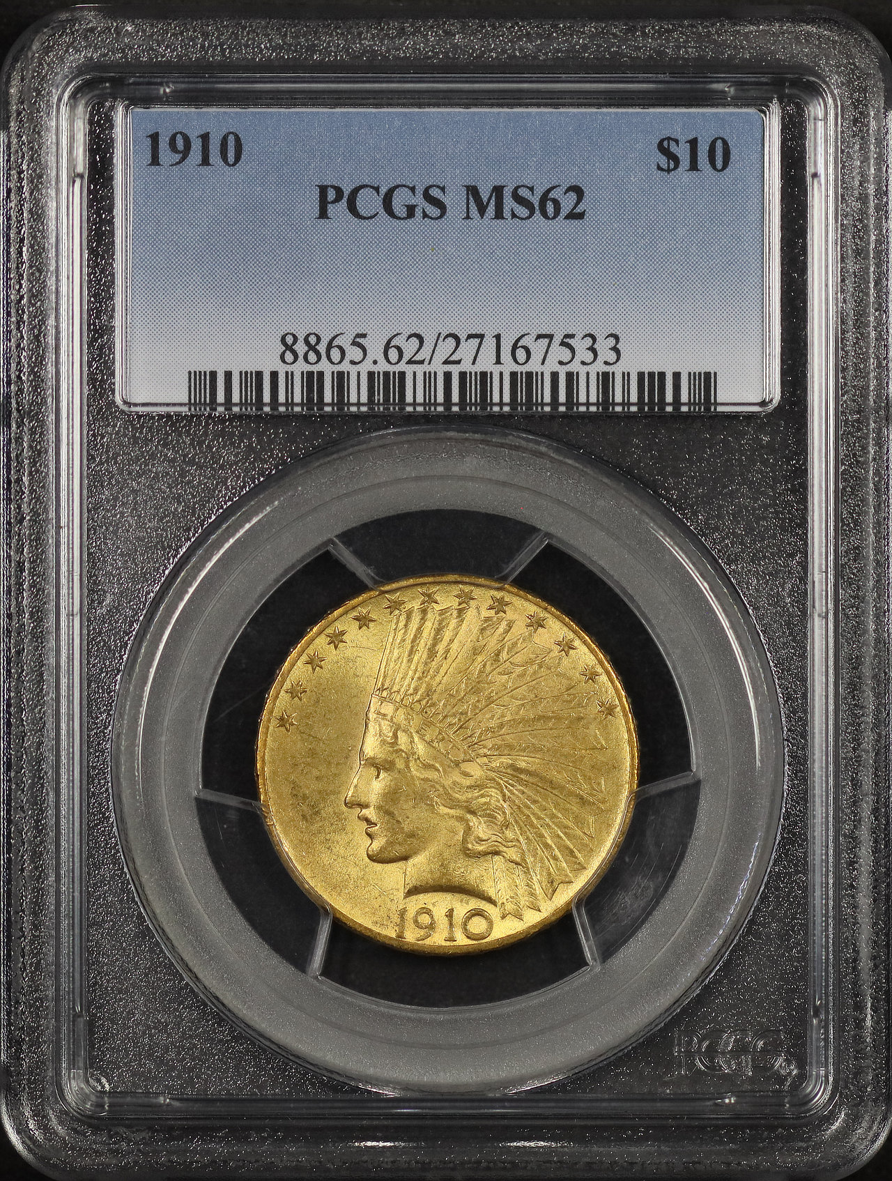 1910 Indian $10 Motto PCGS MS-62 designed by Augustus Saint Gaudens.