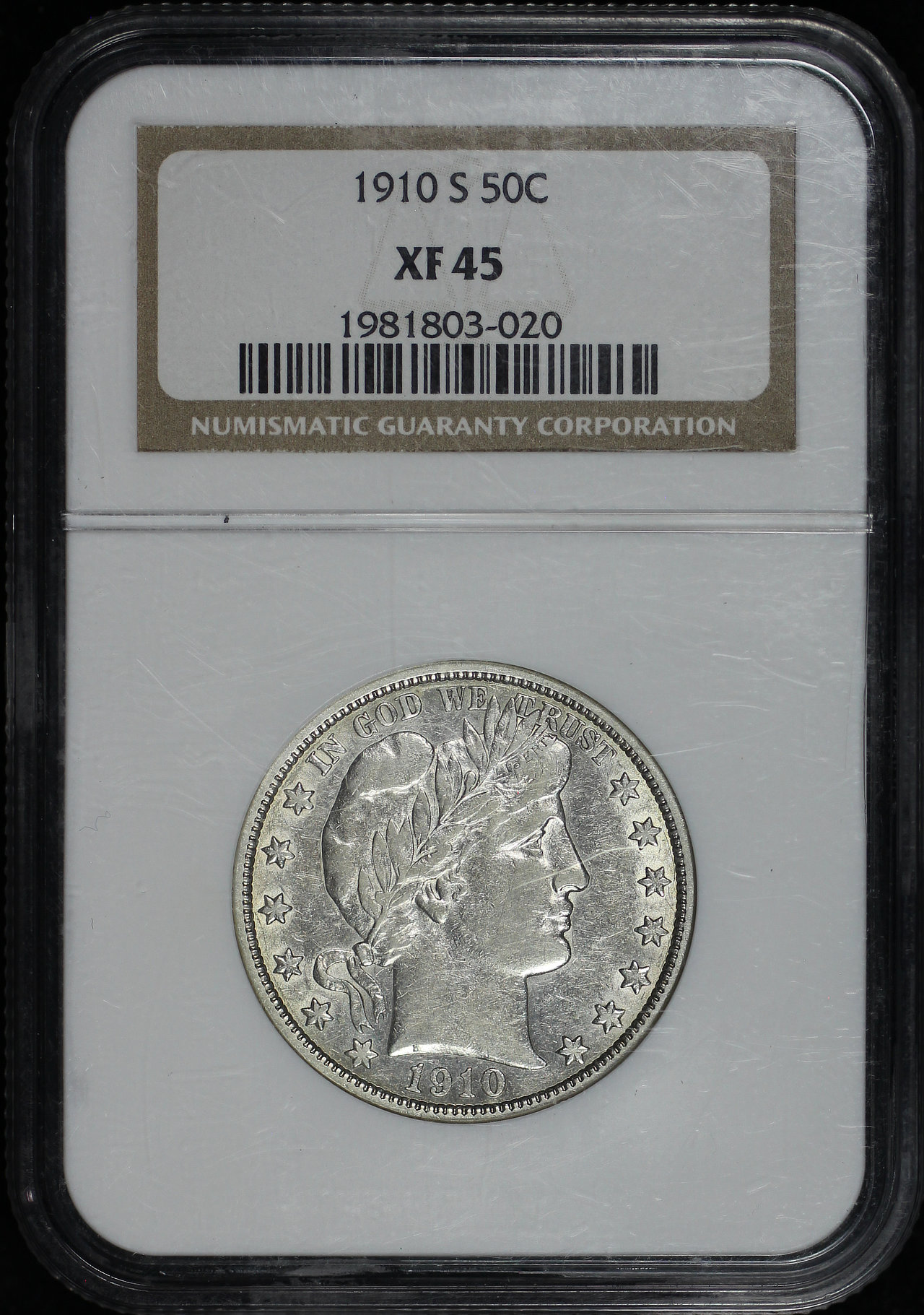 1910-S Barber Half Dollar NGC XF-45.