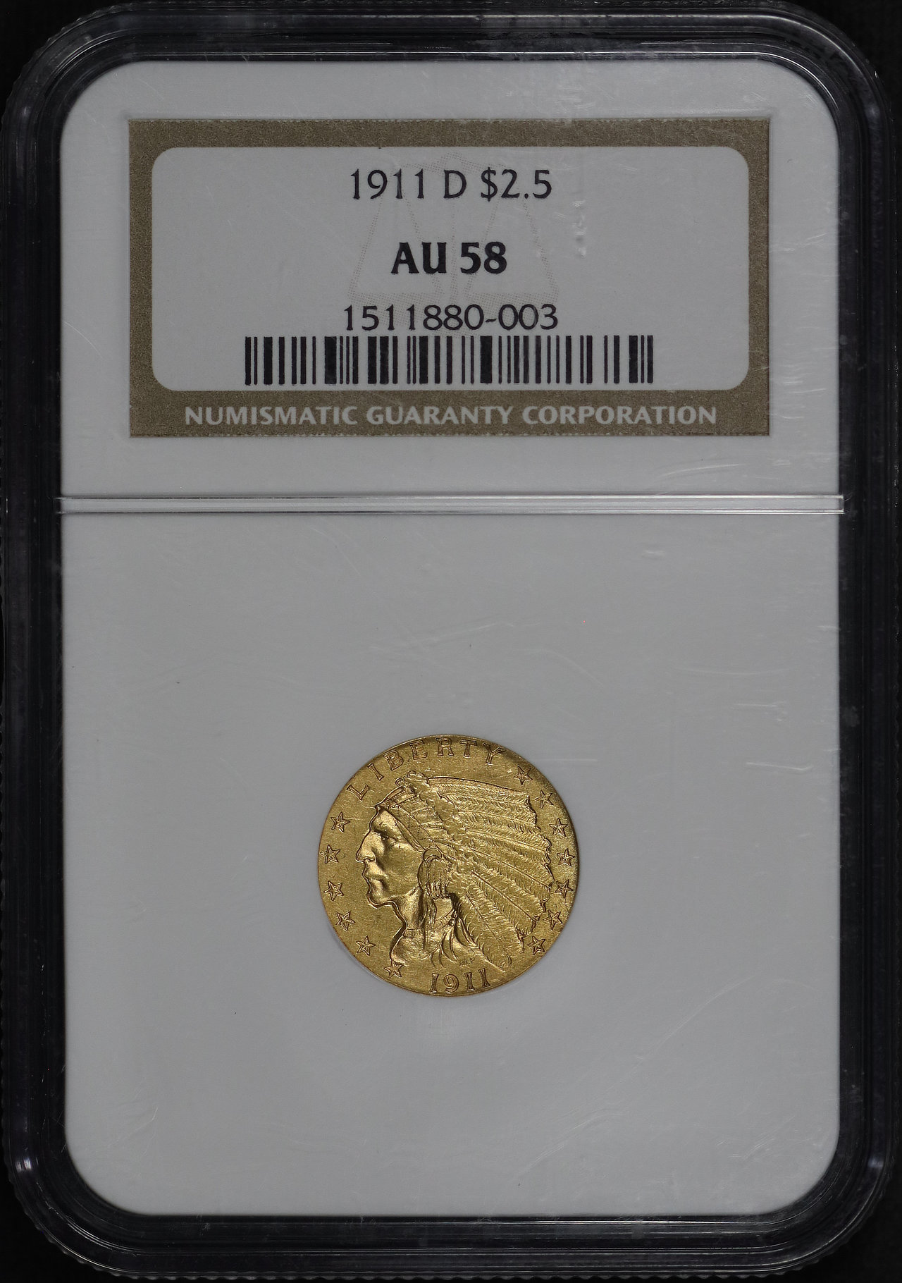 1911-D Indian $2.5 NGC AU-58.