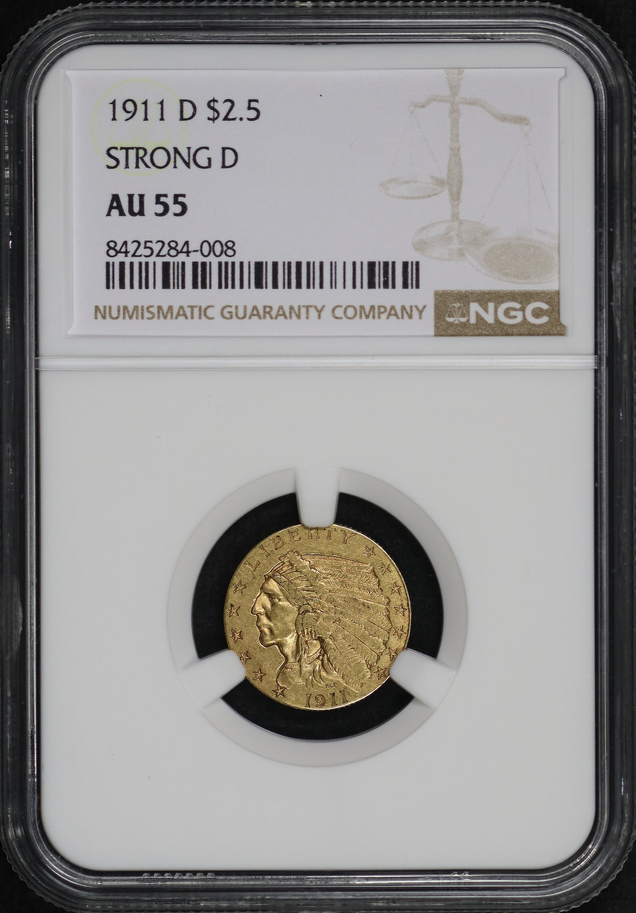 1911-D Indian $2.5 Strong D NGC AU-55.