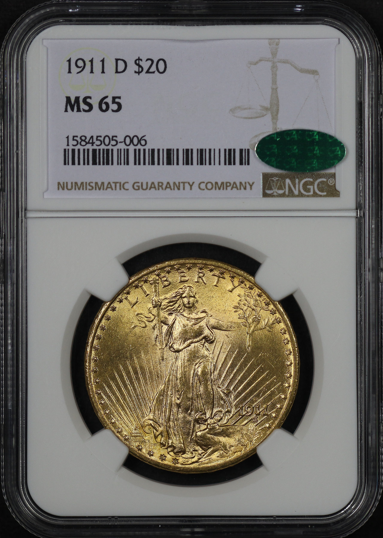 1911-D St. Gaudens $20 NGC MS-65 CAC.