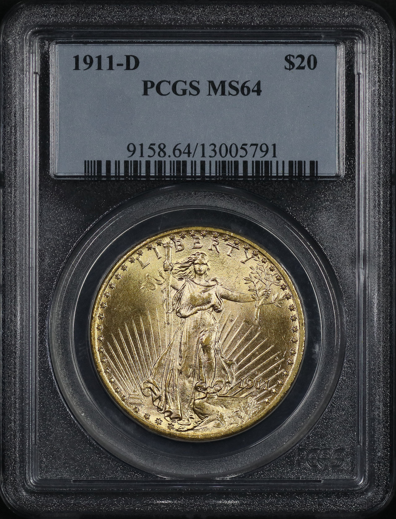 1911-D St. Gaudens $20 PCGS MS-64 designed by Augustus Saint Gaudens.