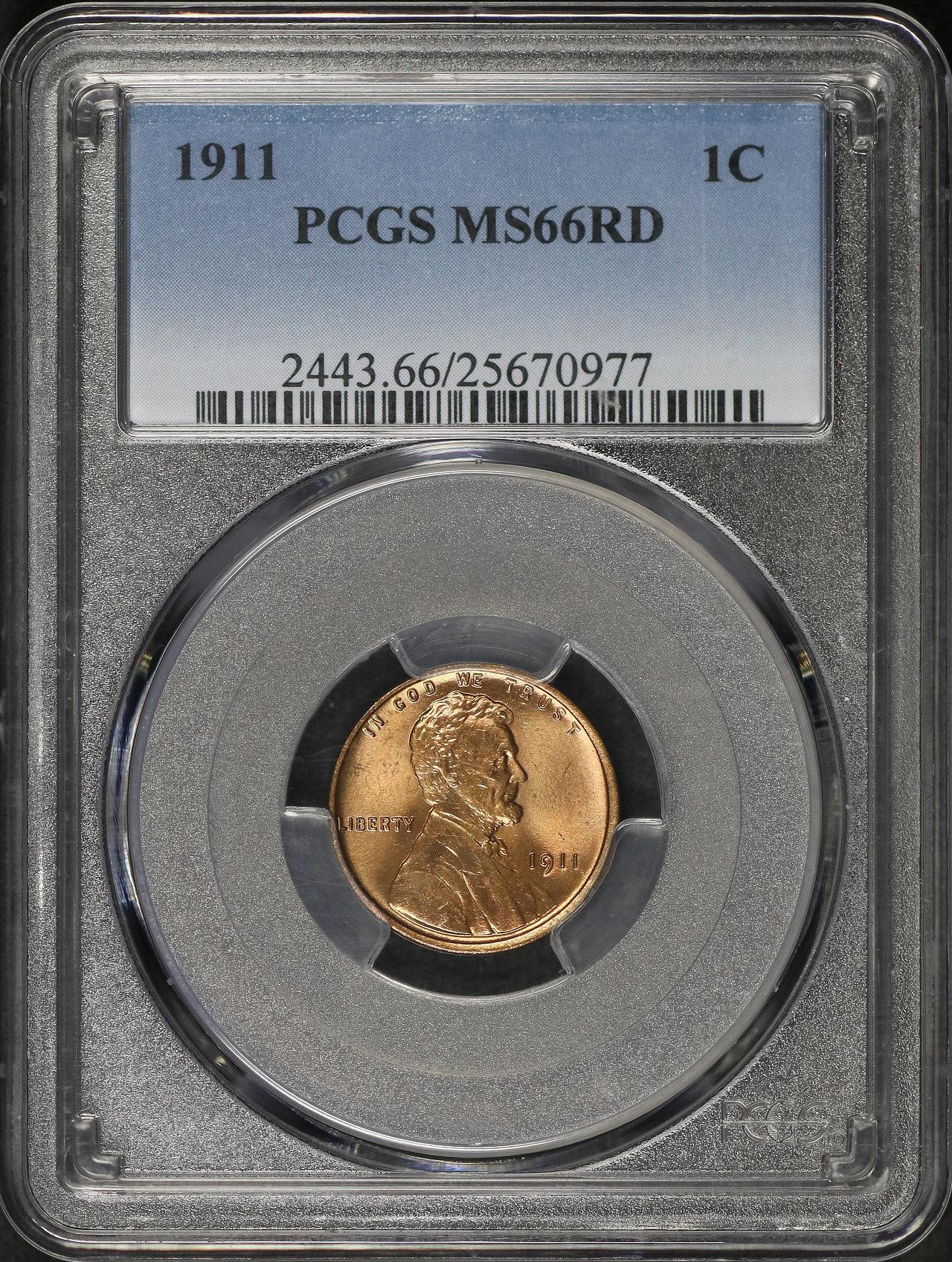 1911 Lincoln Cent Wheat Reverse PCGS MS-66 RD designed by Victor David Brenner.