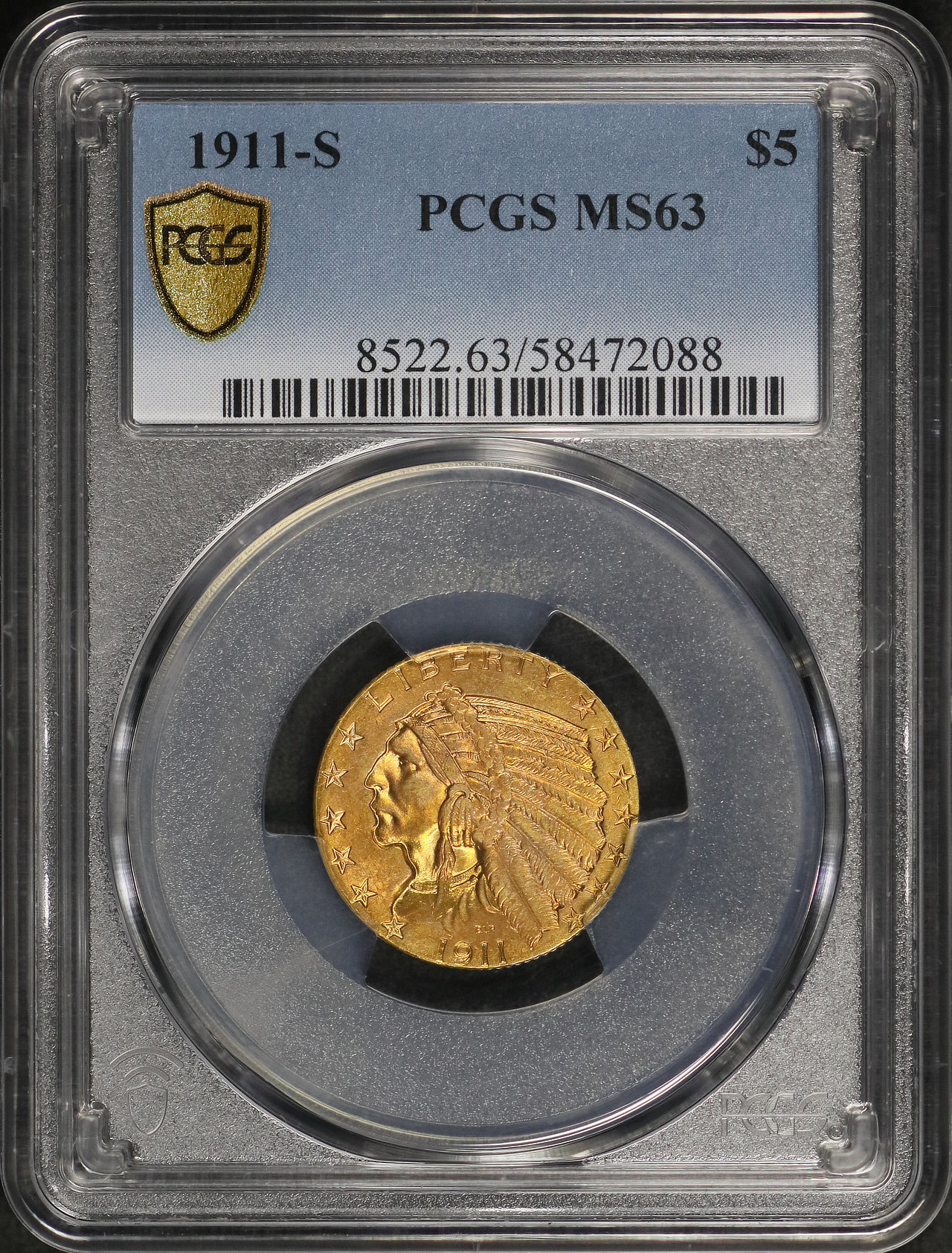 1911-S Indian $5 PCGS MS-63