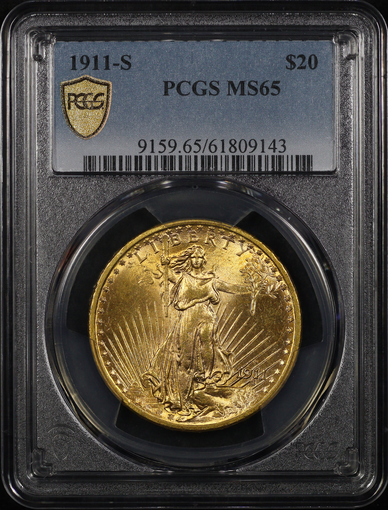 1911-S St. Gaudens $20 PCGS MS-65 designed by Augustus Saint Gaudens.