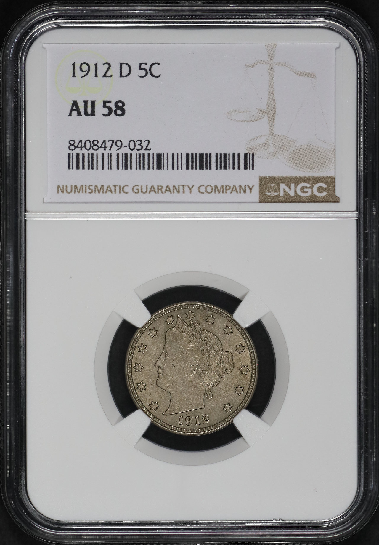 1912-D Liberty Nickel NGC AU-58.