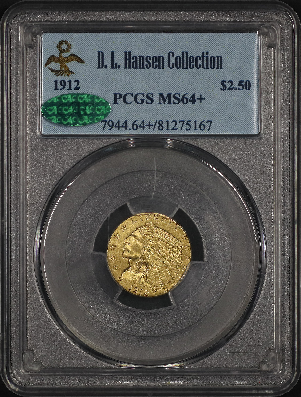 1912 Indian $2.5 PCGS MS-64+ CAC