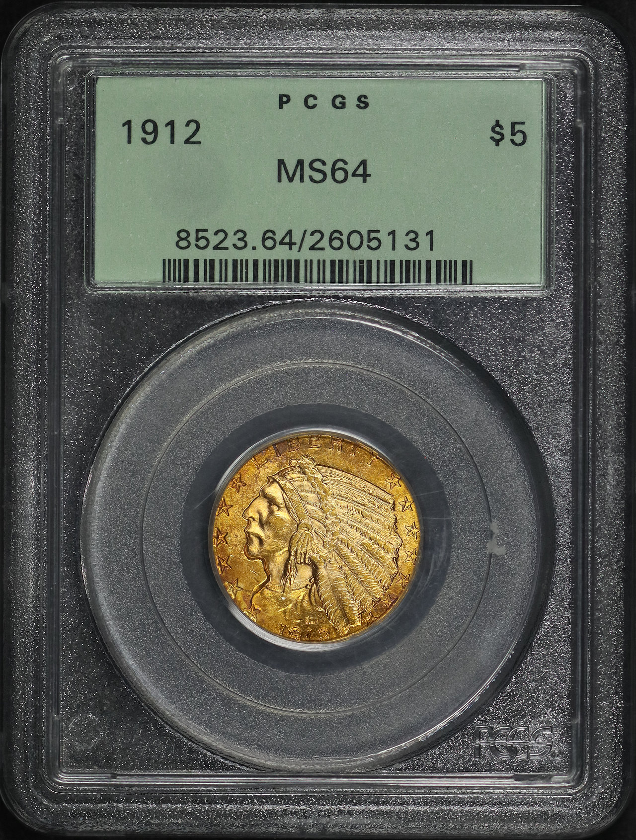 1912 Indian $5 PCGS MS-64 Old Green Holder
