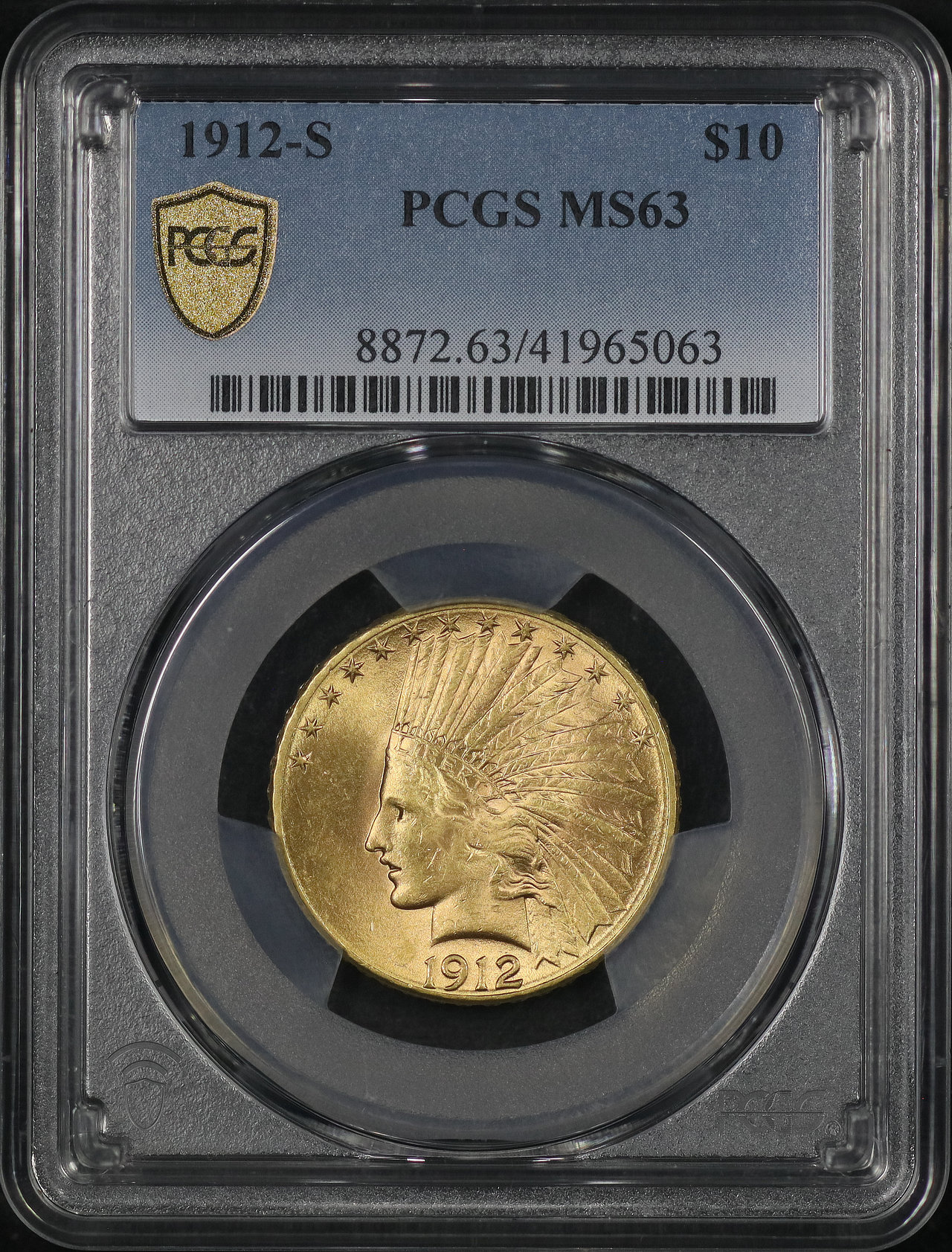 1912-S Indian $10 Motto PCGS MS-63