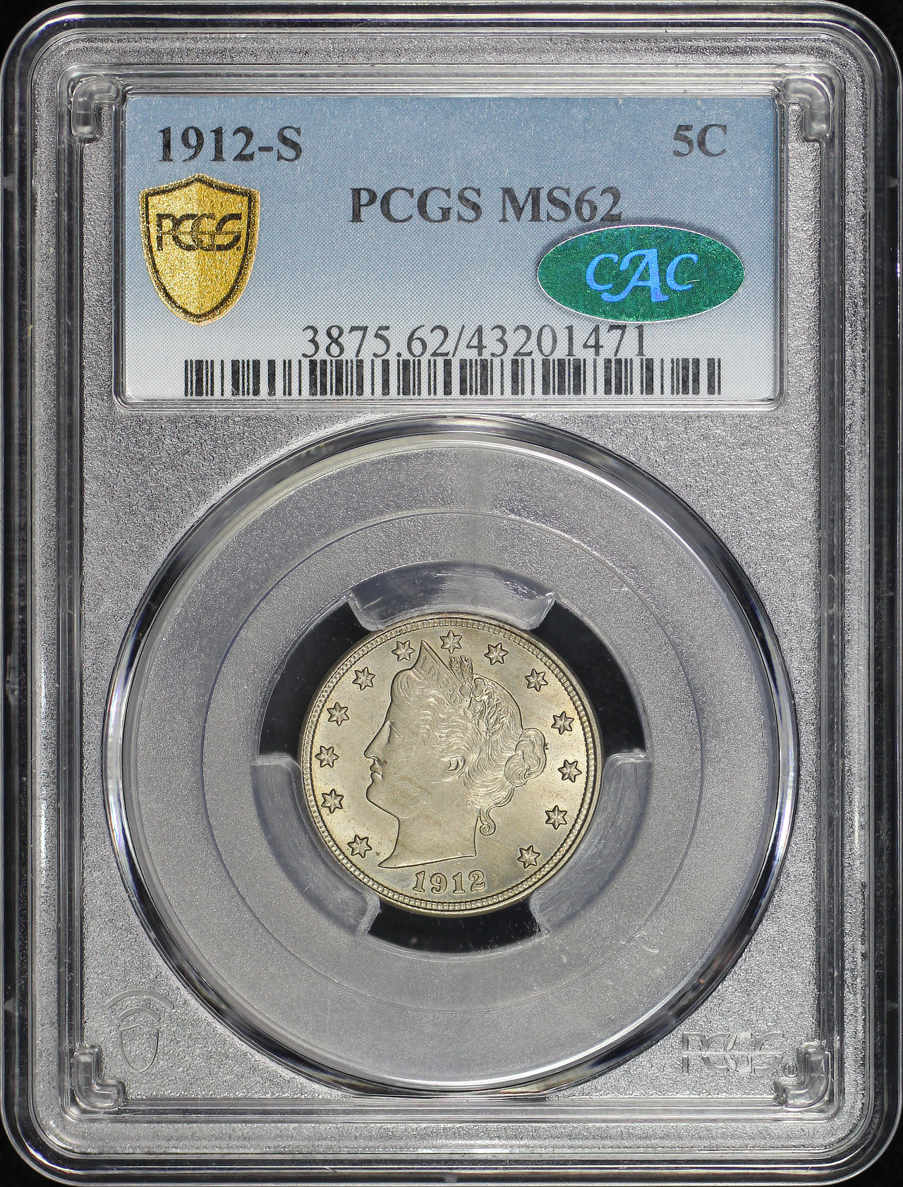 1912-S Liberty Nickel PCGS MS-62 CAC
