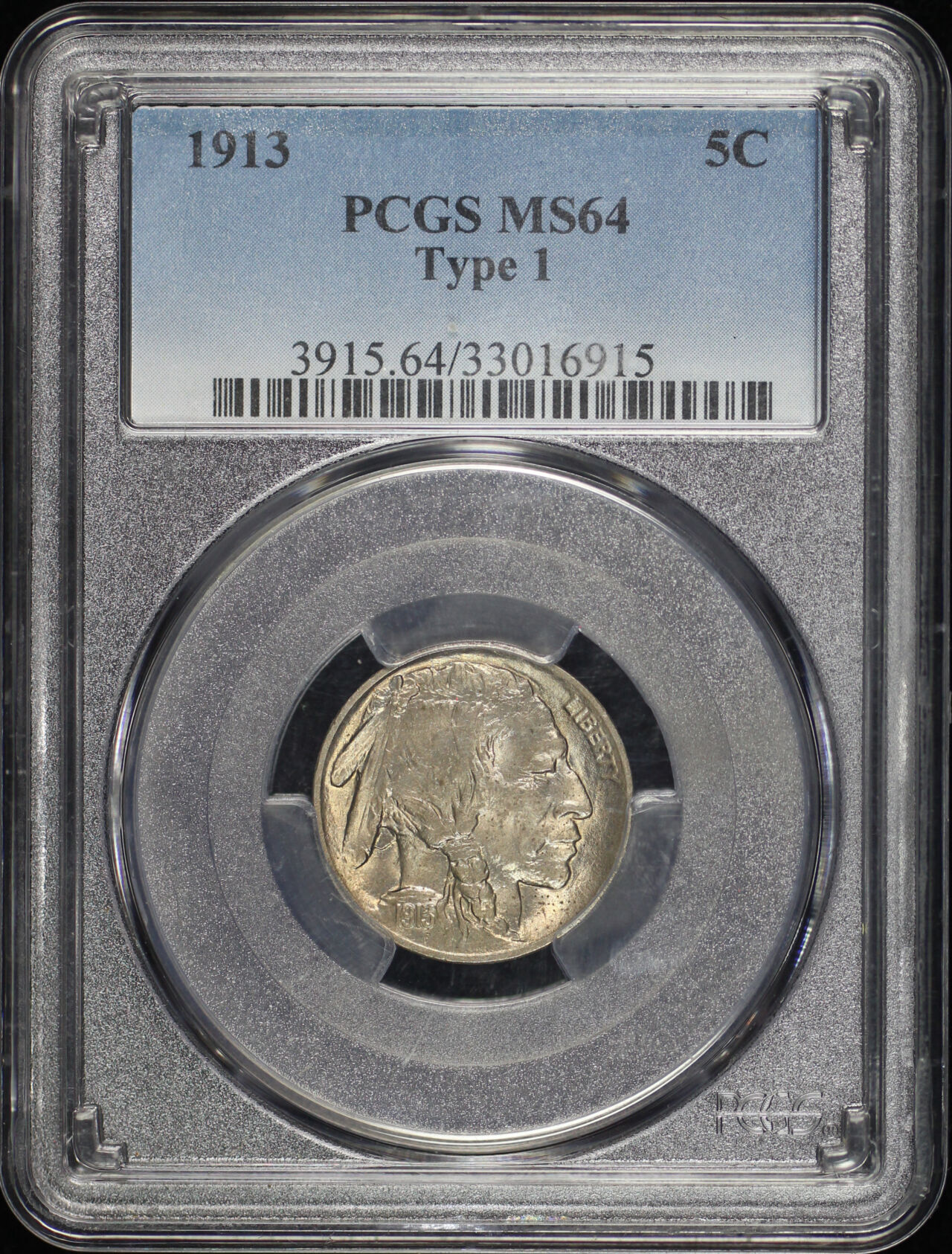1913 Buffalo Nickel Type 1 PCGS MS-64 designed by James Earle Fraser.