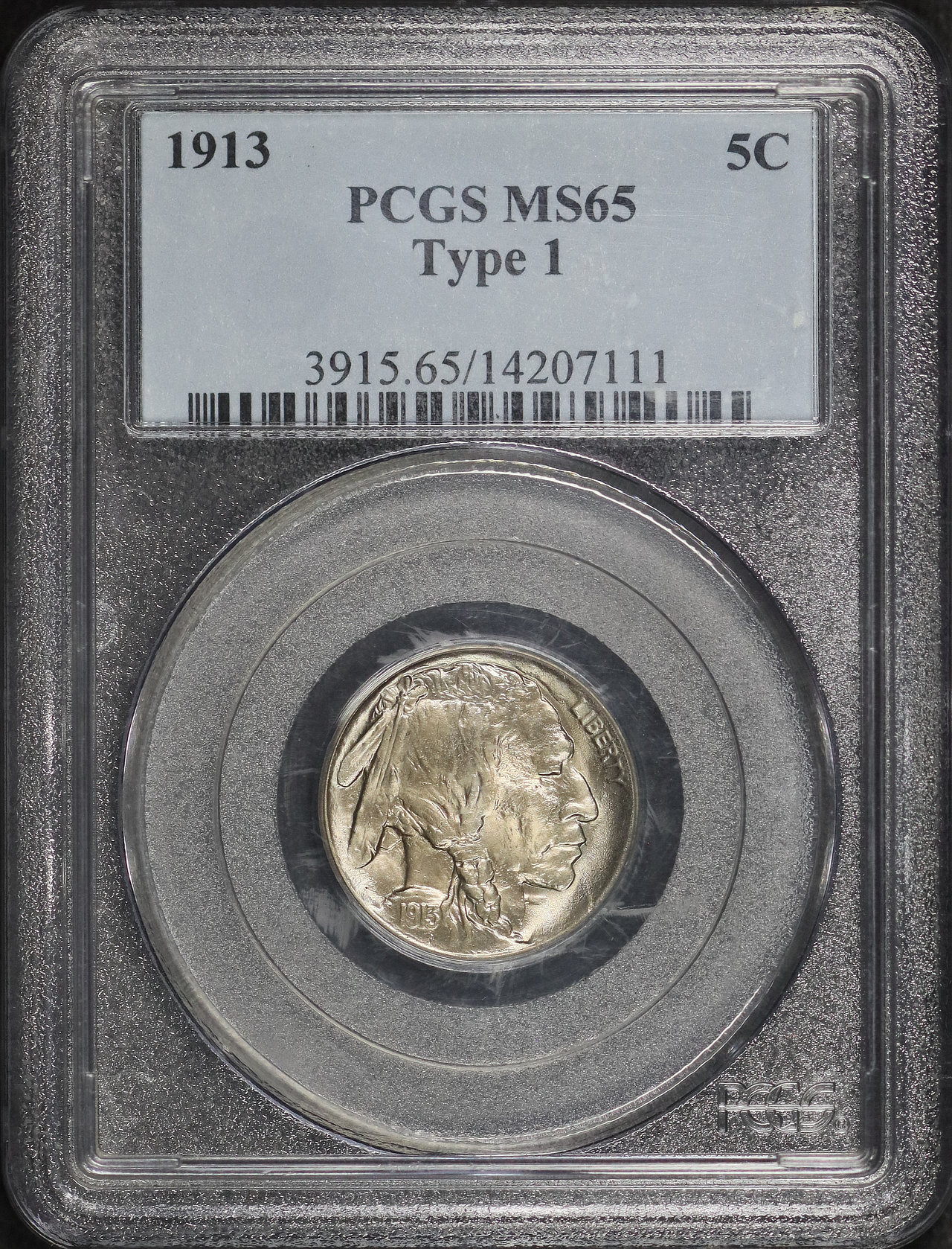 1913 Buffalo Nickel Type 1 PCGS MS-65 designed by James Earle Fraser.