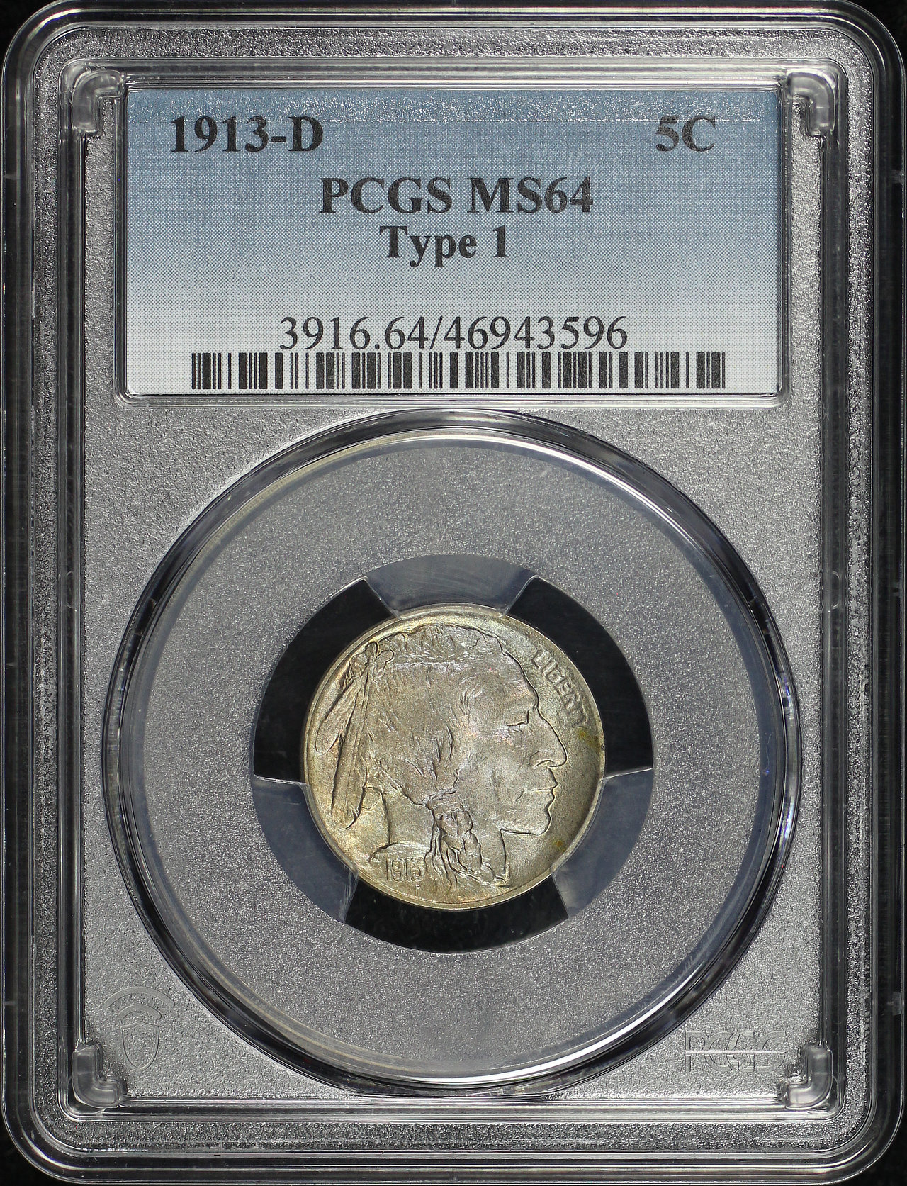 1913-D Buffalo Nickel Type 1 PCGS MS-64 designed by James Earle Fraser.