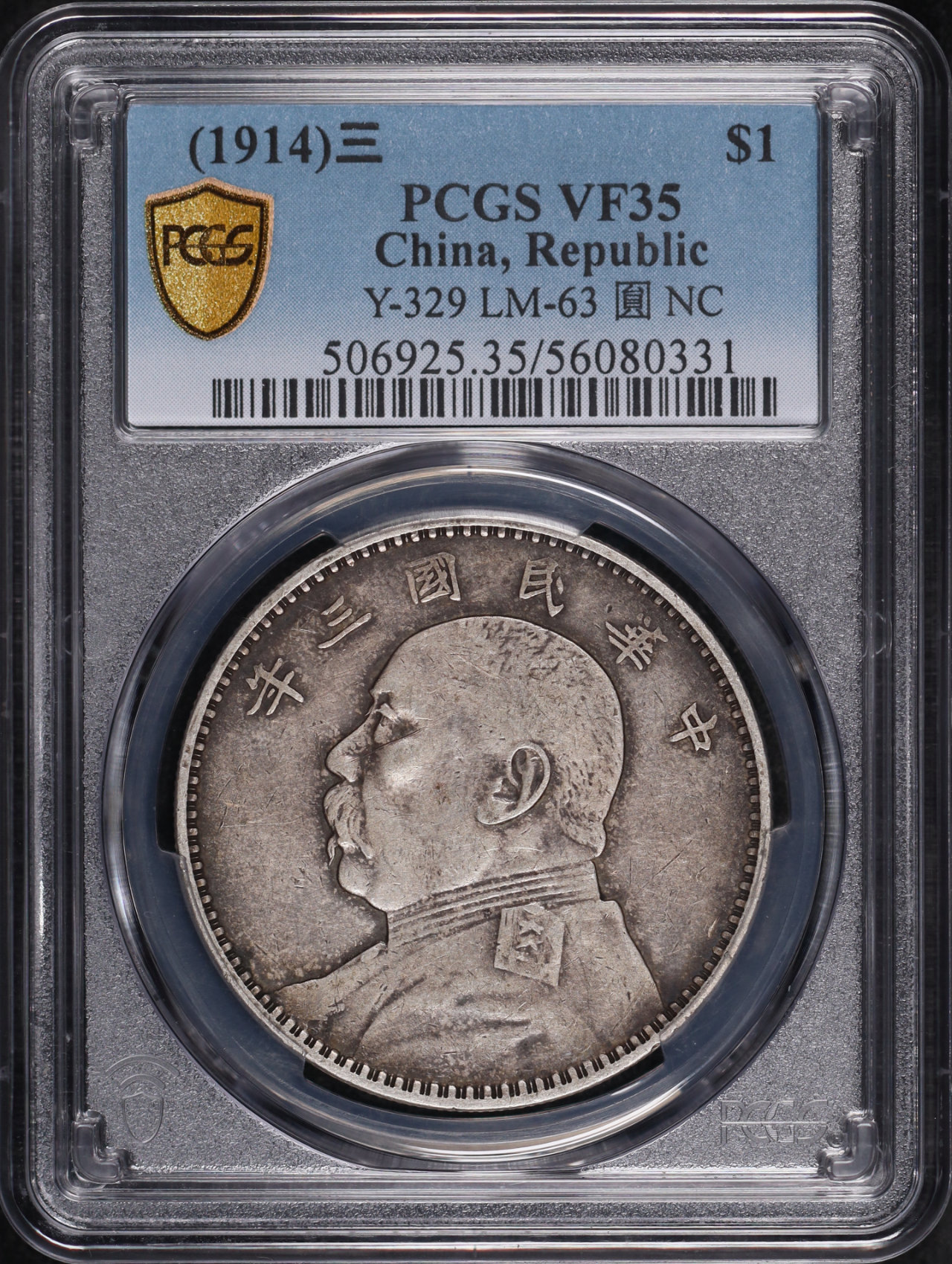 (1914) 三 China Silver Fat Man Dollar (1 Yuan) Y-329 LM-63 Original 圎 NC PCGS VF-35.