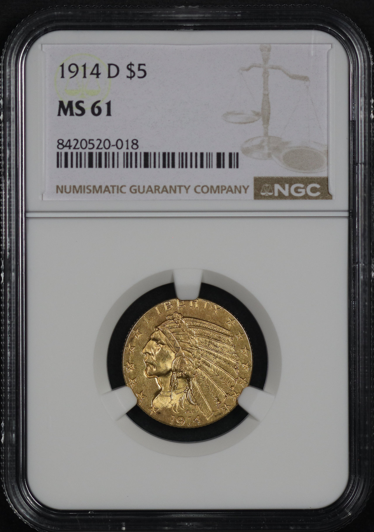 1914-D Indian $5 NGC MS-61.