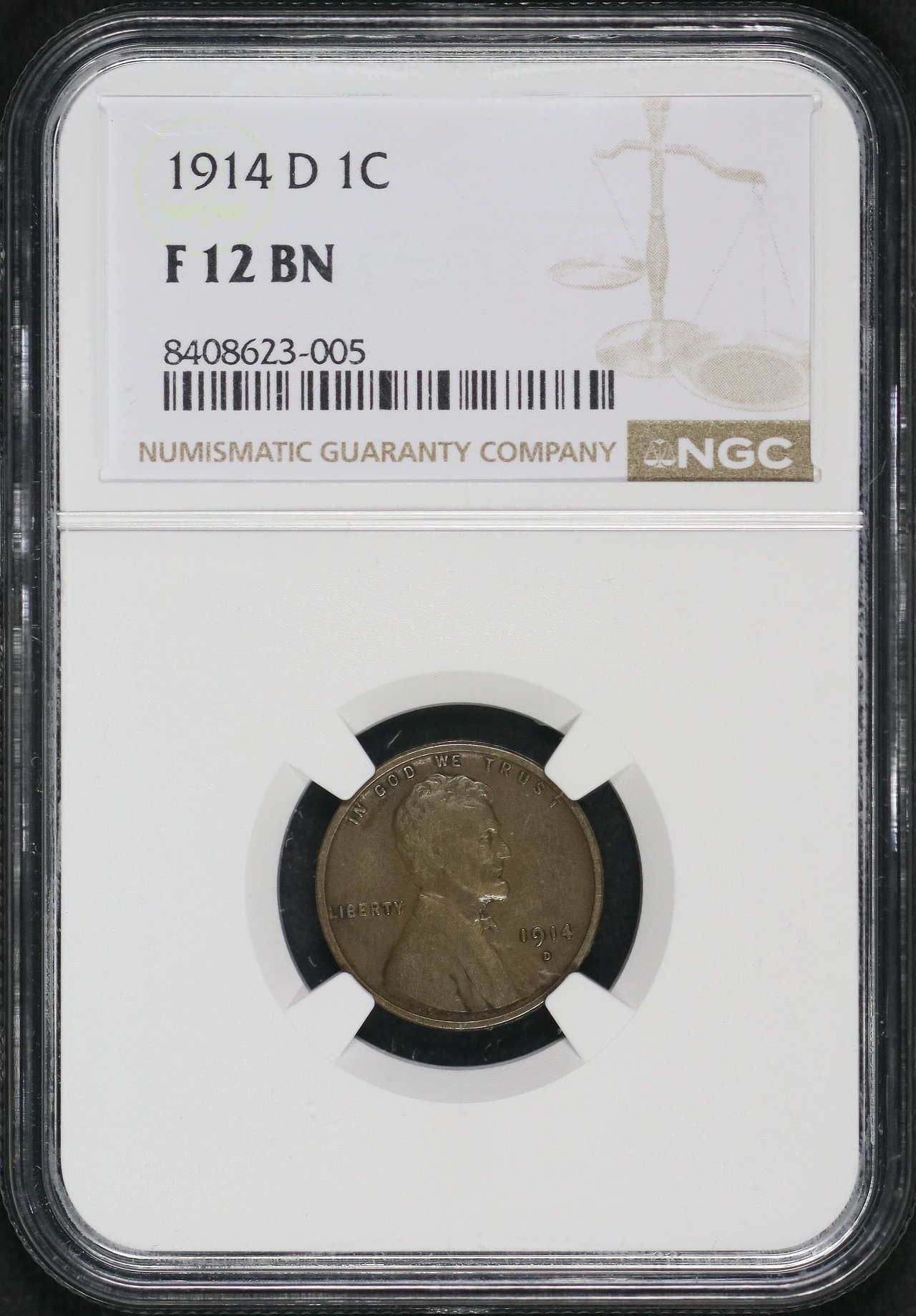 1914-D Lincoln Cent Wheat Reverse NGC F-12 BN.