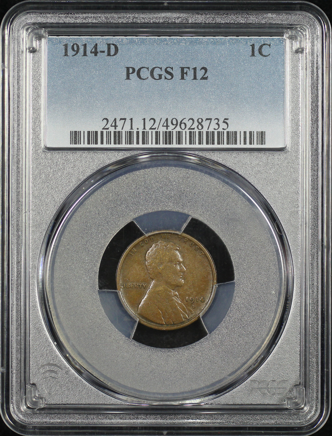 1914-D Lincoln Cent Wheat Reverse PCGS F-12 BN designed by Victor David Brenner.
