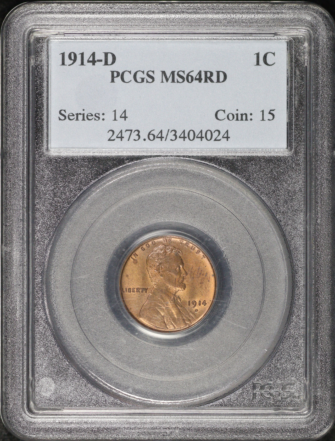 1914-D Lincoln Cent Wheat Reverse PCGS MS-64 RD designed by Victor David Brenner.
